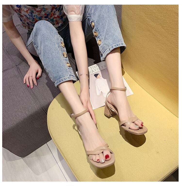 ネット赤いサンダル女性の妖精風2020夏新しい野生の厚さのins潮ファッションハイヒールワードスリッパ夏 部族の婦人靴4993033