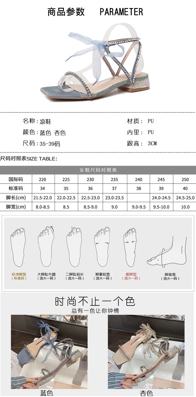 サンダル女性の妖精スタイル2020夏の新しいスタイルの正方形のつま先のファッションすべての一致オープンつま先ラインストーン厚いヒールローマの靴女性 部族の婦人靴4105573