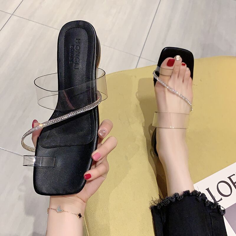 純赤のサンダルとスリッパレディースアウター2020新しい夏のファッションフリップフロップラインストーン透明なオープントウ厚めのフリップフロップ 部族の婦人靴7507001