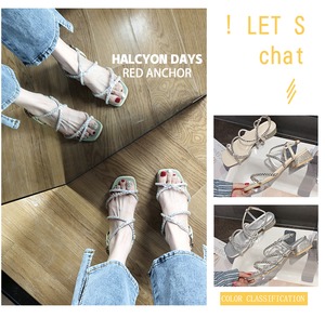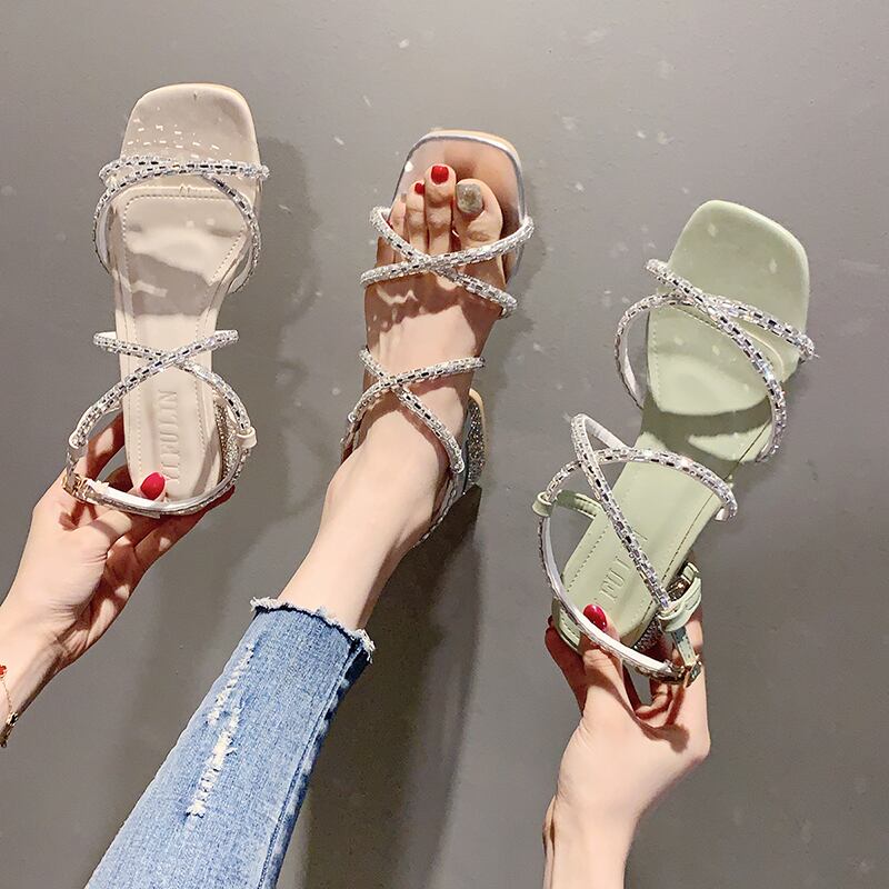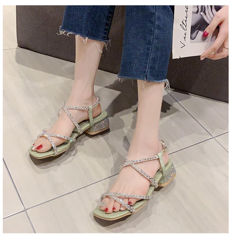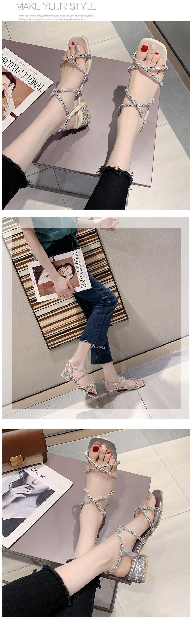 女性のファッションサンダルの妖精スタイル2020夏の新しい波のファッションラインストーンシンプルな厚いヒールクロスストラップローマの靴 部族の婦人靴0634930