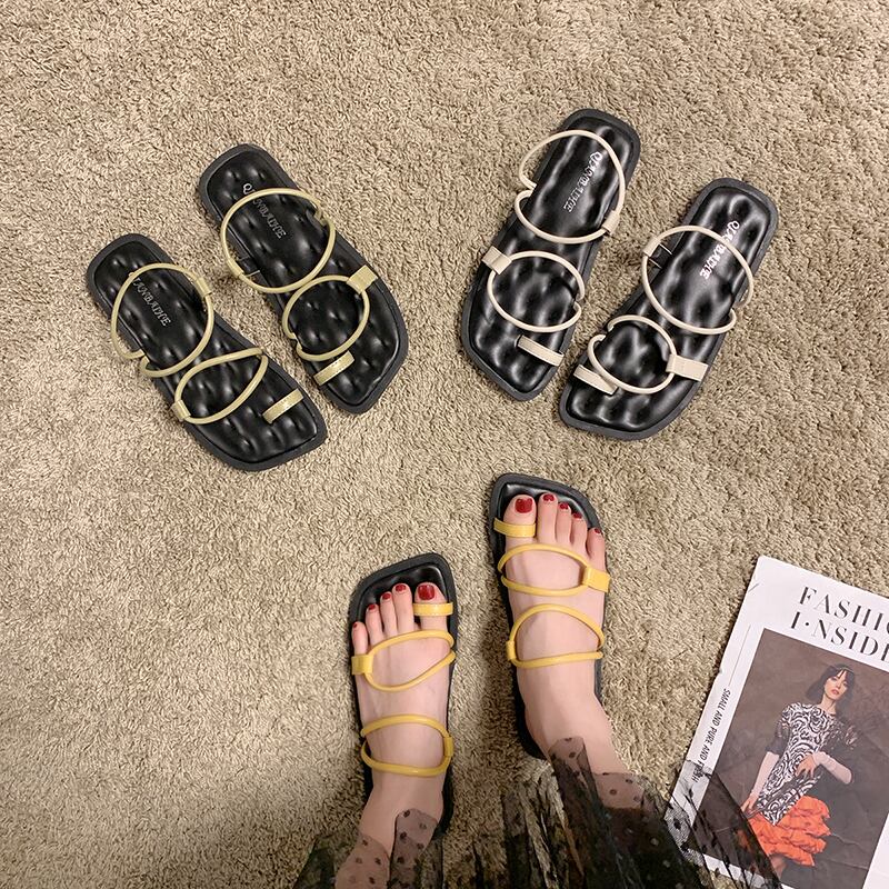 サンダルレディース020夏新作ins学生ファッションネットレッドフラットフェアリースタイルセット足ローマシューズレディース 部族の婦人靴5180554