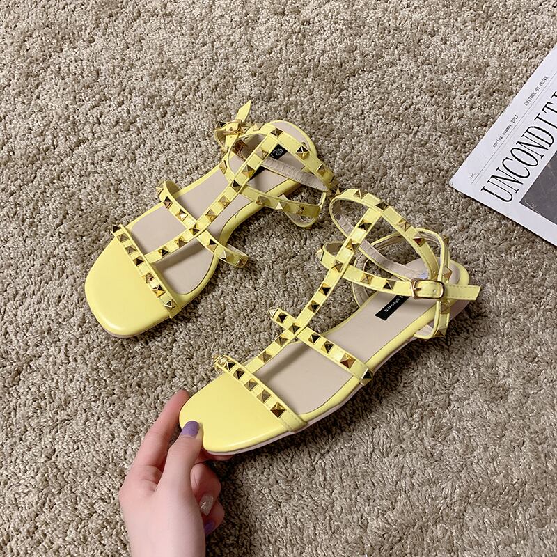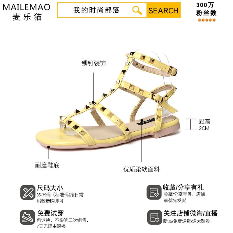 ローマのサンダル女性2020夏の新しいファッションワイルドネット赤イン潮妖精スタイルカジュアルフラットシューズ 部族の婦人靴7665127