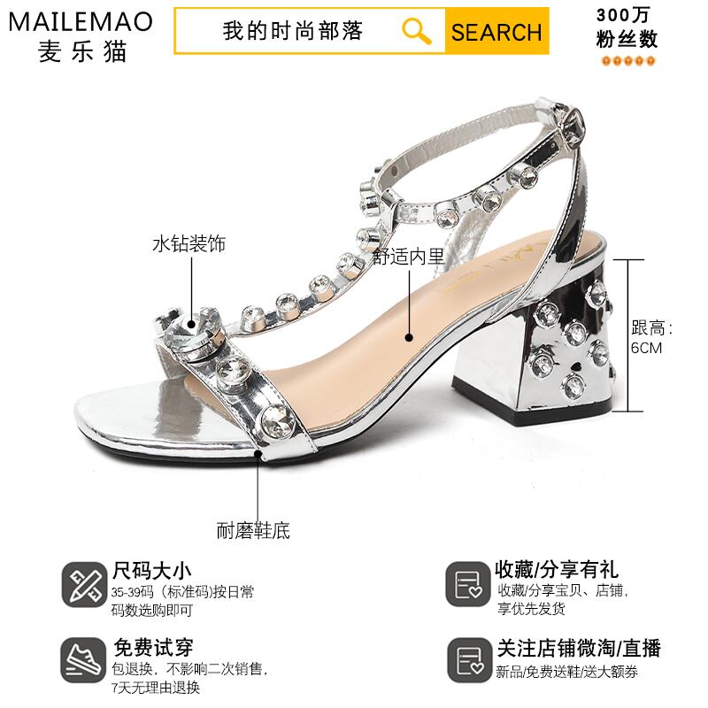 サンダル女性の妖精スタイル2020夏新しいins潮学生ラインストーンワイルドネット赤い厚いヒールハイヒール 部族の婦人靴5508156