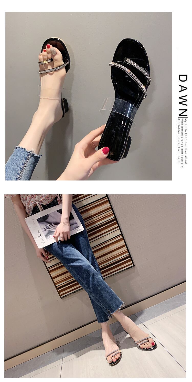 スリッパレディースアウターウェア2020新しい春ネットレッドファッション厚さオールマッチラインストーン妖精風サンダルローマサンダル 部族の婦人靴8268257