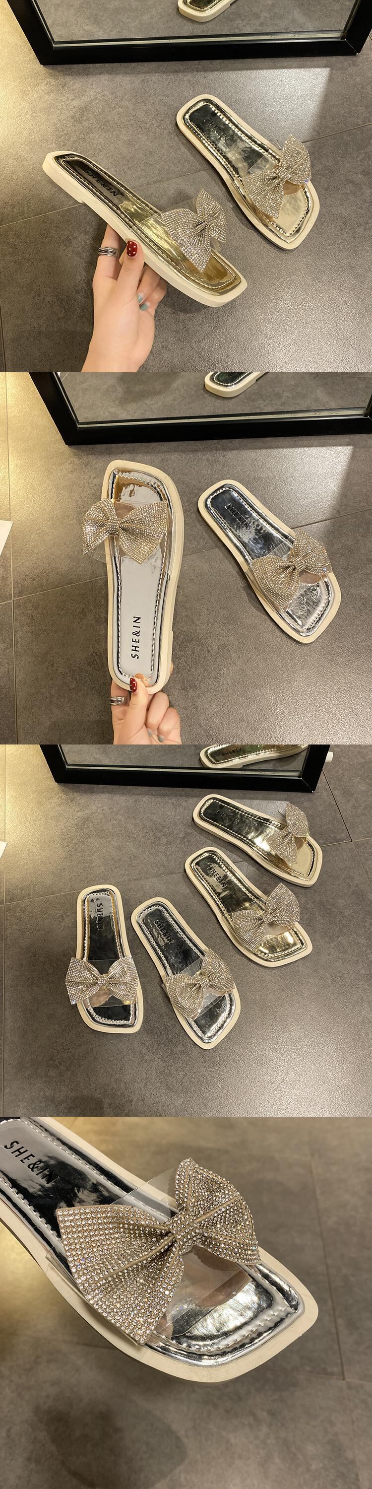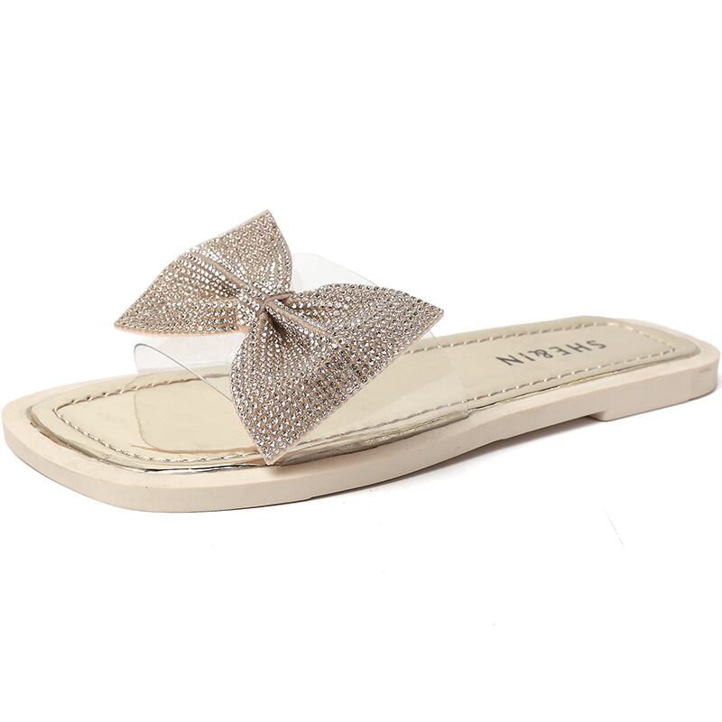 スリッパ女性insタイド2020野生のネット赤の弓のラインストーンパールオープントゥフラットドラッグの新しい夏バージョン 部族の婦人靴4182917