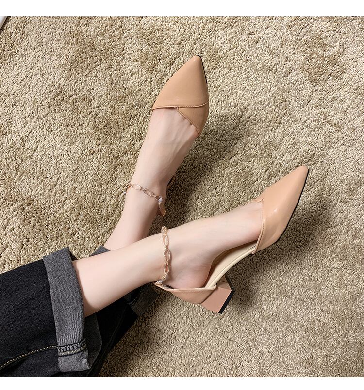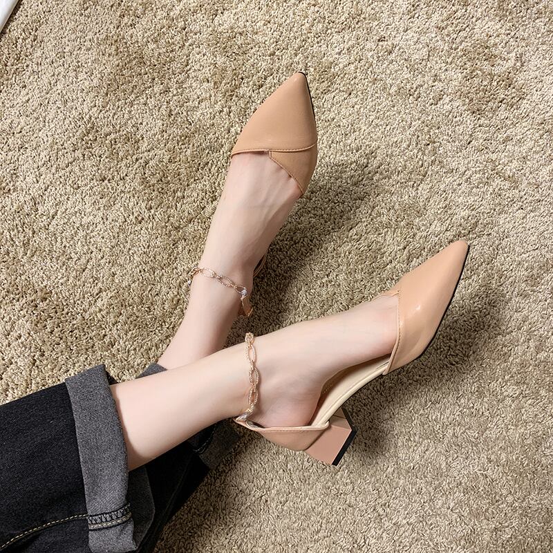 サンダル2020春と夏の新しい中空の怠惰な単語の女性の靴は浅い口の厚いヒールの女性を指摘しました 部族の婦人靴0815376