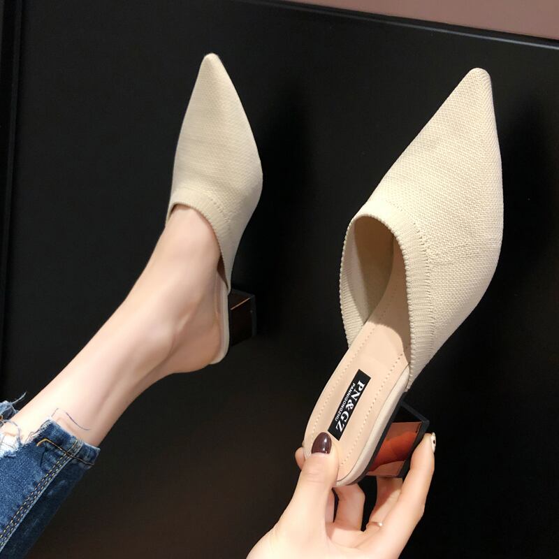 セミスリッパ女性が新しいファッション野生の先のとがった先の尖った防水platm女性ハイヒールレトロ厚いヒールシングルシューズ女性を着用します。 部族の婦人靴9683983