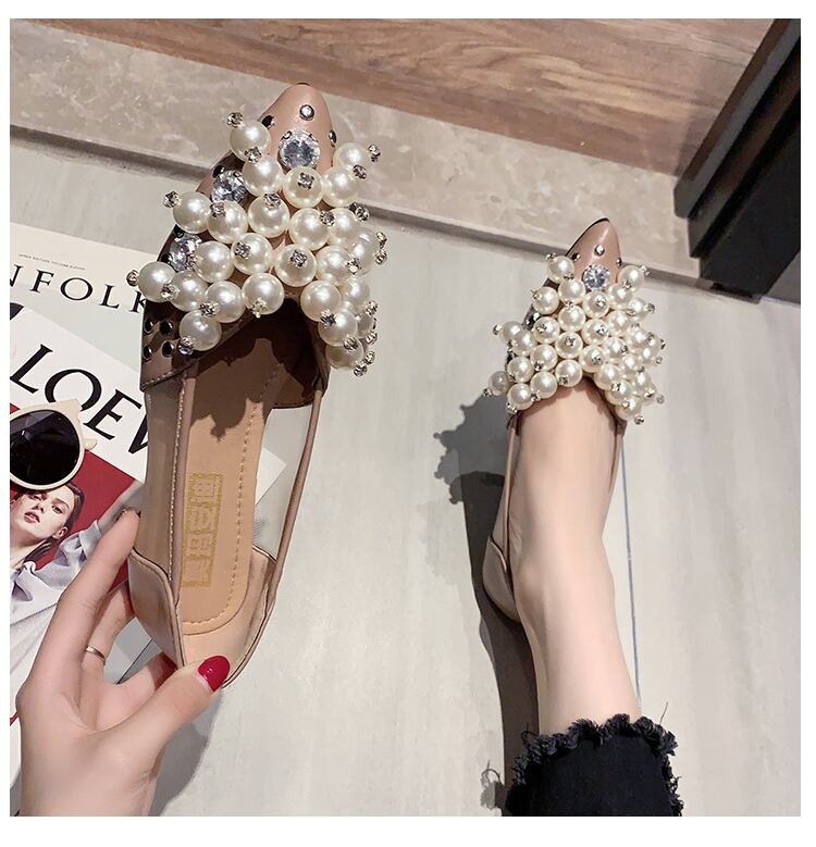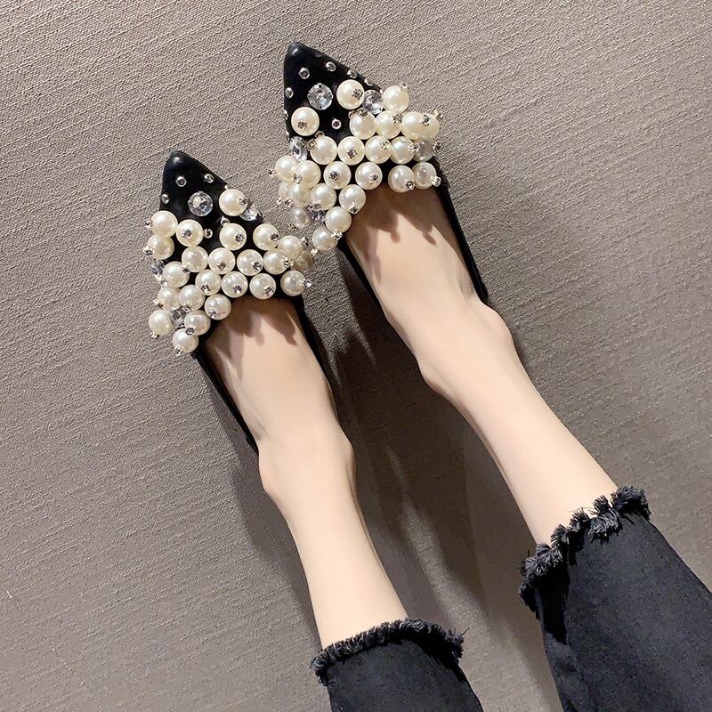先のとがったつま先女性の単一の靴2020新しい夏の通気性の女性の靴ファッションネット赤真珠スクープシューズ浅い口おばあちゃんの靴 部族の婦人靴9239880