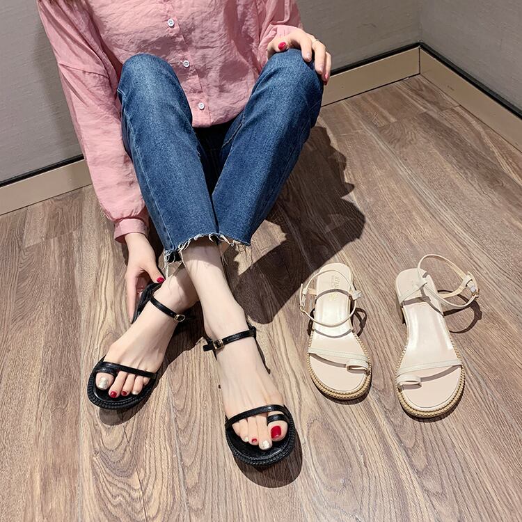 女性の妖精スタイル2020夏の新しいイン潮バージョンの赤い赤いバックルの丸い頭の厚いヒールのローマの靴のサンダル 部族の婦人靴6354058