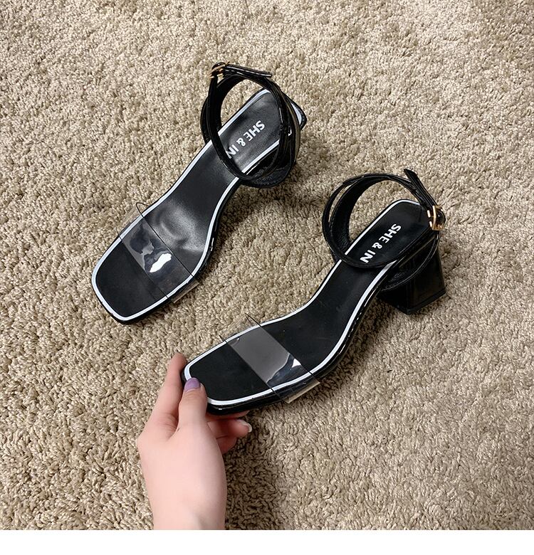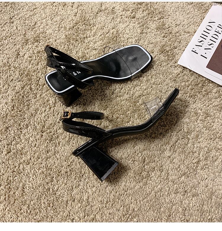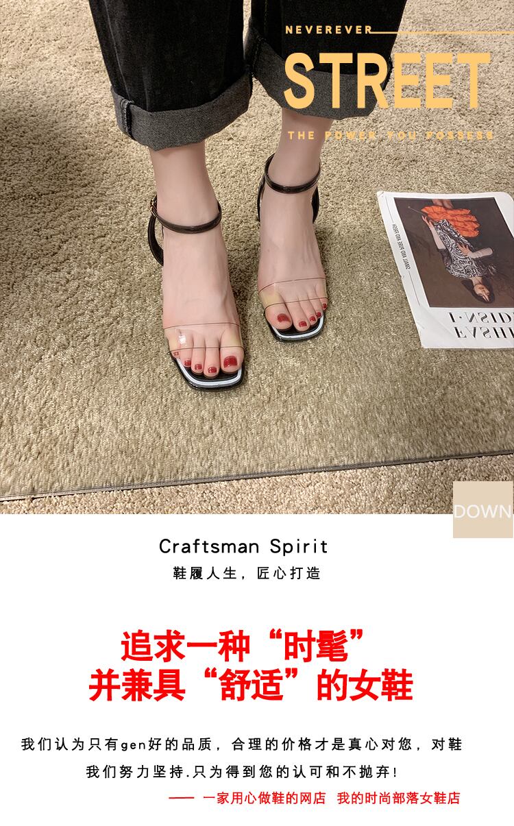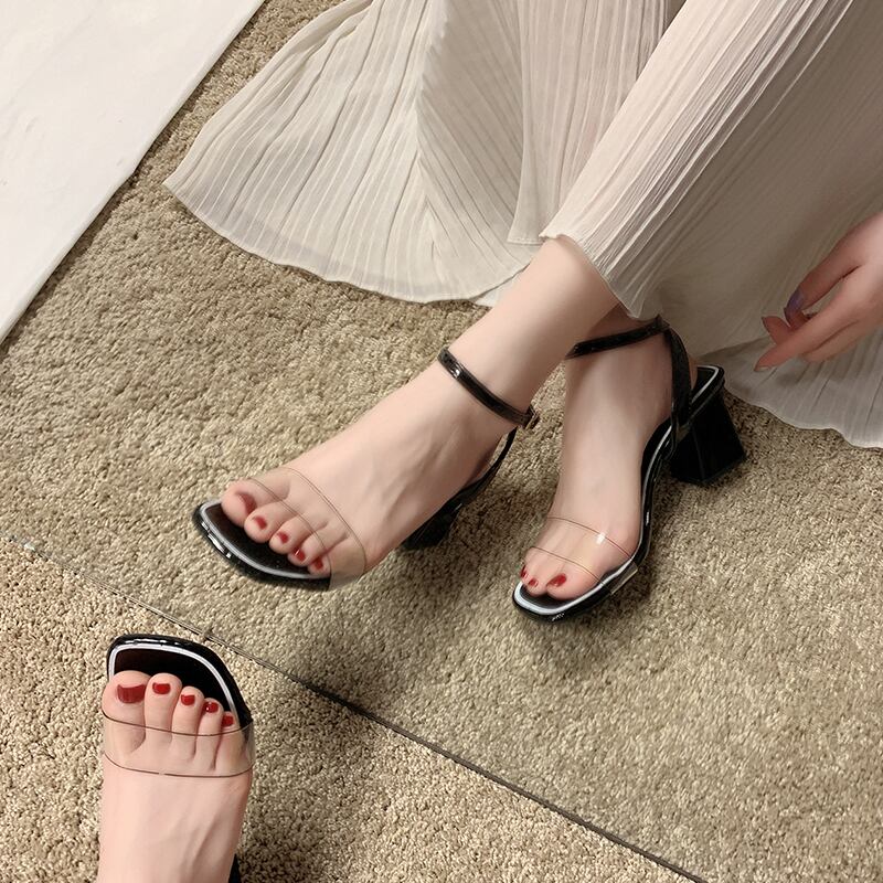 サンダル2020新作レディースシューズバージョンインネットレッドファッションオールマッチオープントゥバックル厚ヒールハイヒール 部族の婦人靴4730967
