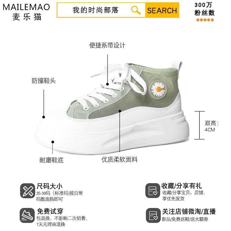小さな白い靴2020新しい女性の夏のネット赤いネットの靴の女性のフラットハイトップの厚い底の靴通気性メッシュの学生 部族の婦人靴9181023