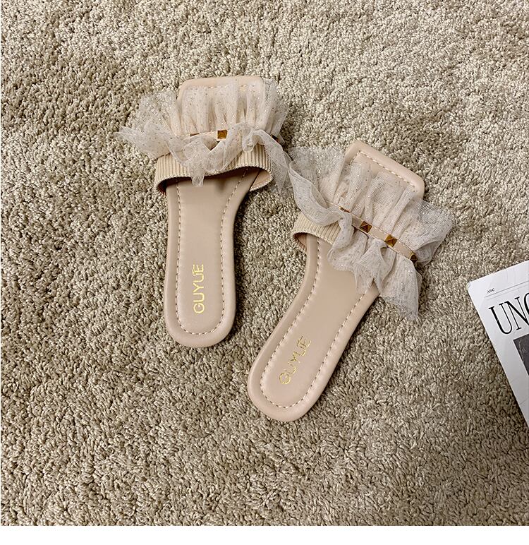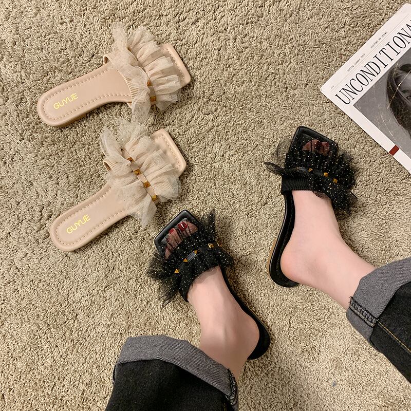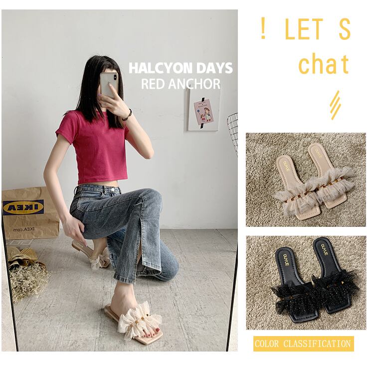 サンダルとスリッパレディースアウター2020夏新作蓮の葉ワイルドネットレッドフェアリーフラットオープントゥフリップフロップ 部族の婦人靴8232393