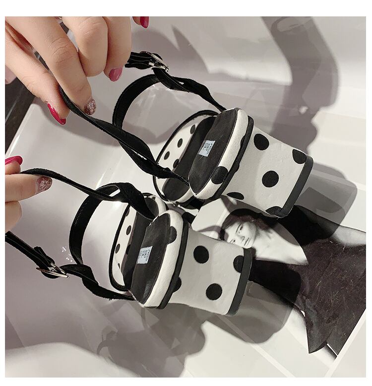 単語のバックルが開いたつま先のネットの赤い妖精ローマの靴で四角いつま先の野生の厚さのサンダルの女性の2020年夏の新バージョン 部族の婦人靴2287458
