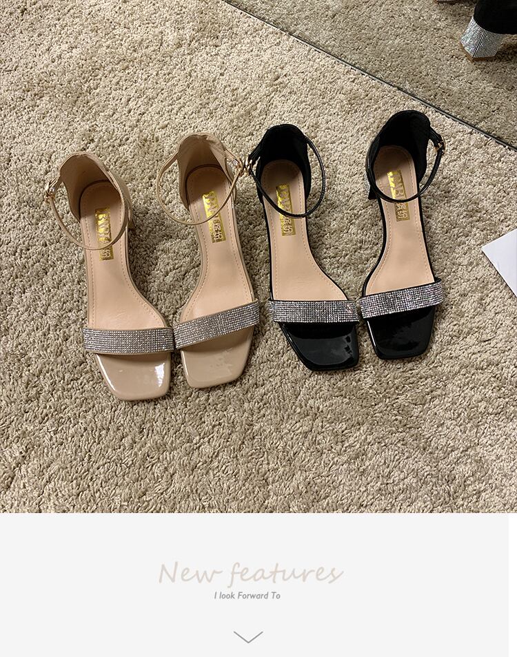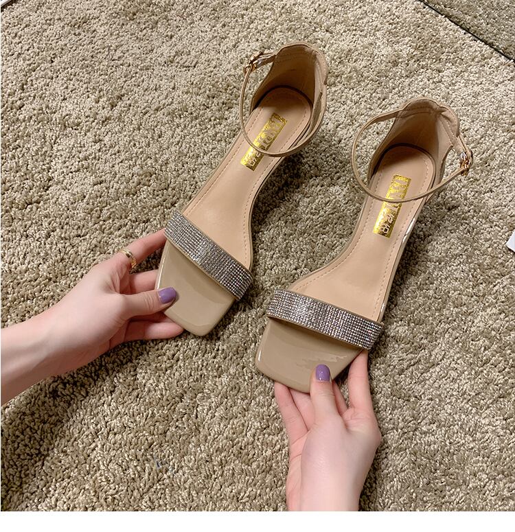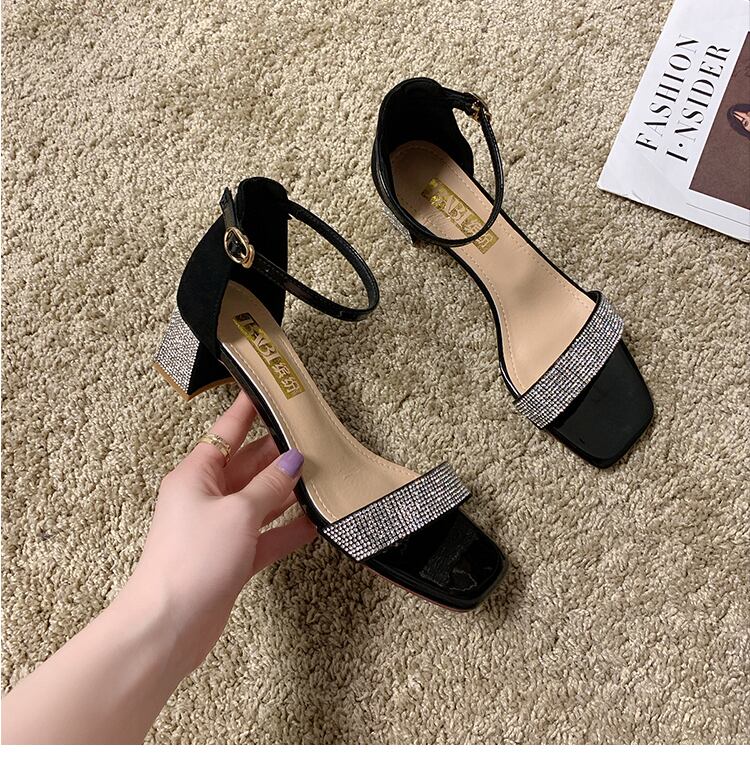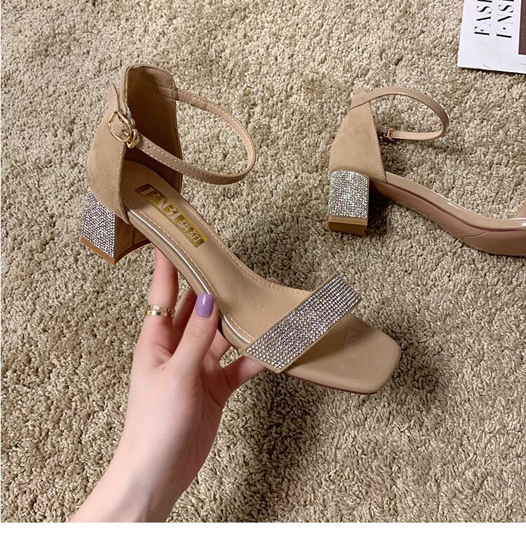 ラインストーンファッションスクエアヘッドワイルドネット赤い妖精厚いヒールバックルローマの靴のサンダル2020新しいバージョン 部族の婦人靴7103678