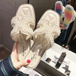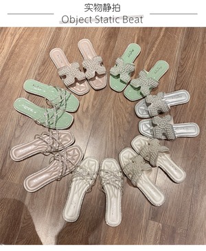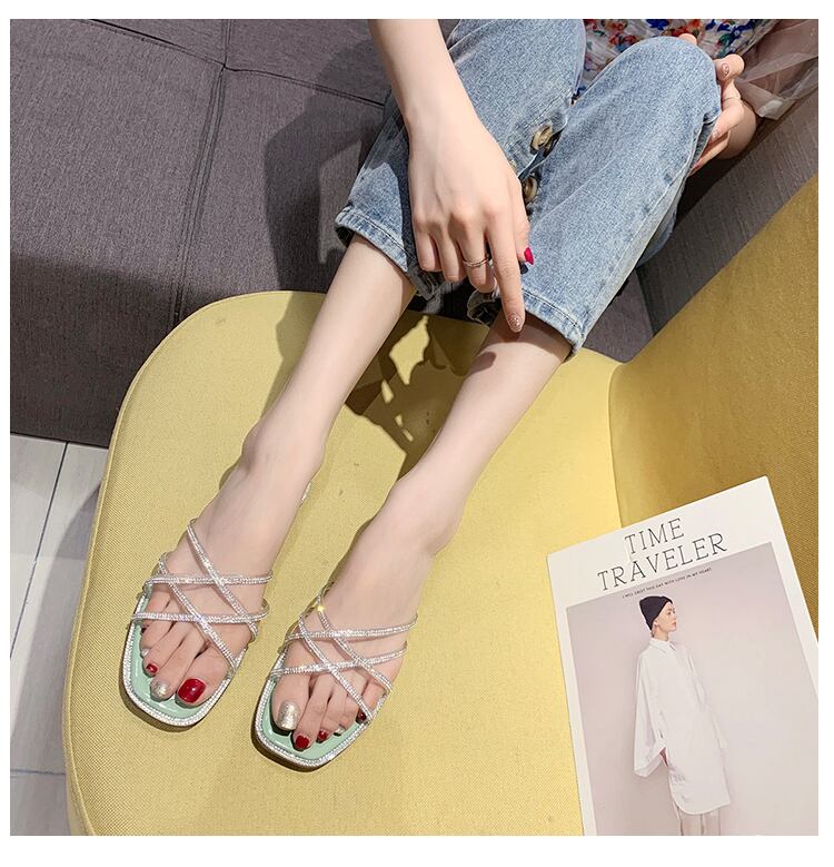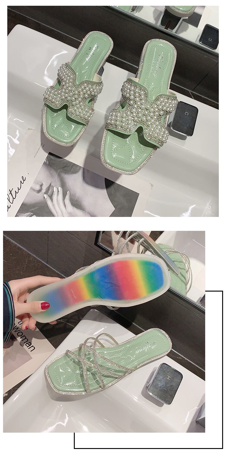 サンダルとスリッパレディースアウターウェア2020新しい夏オールマッチファッションラインストーンストラップフラットスリッパノンスリップレイジーレディースシューズ 部族の婦人靴7523125