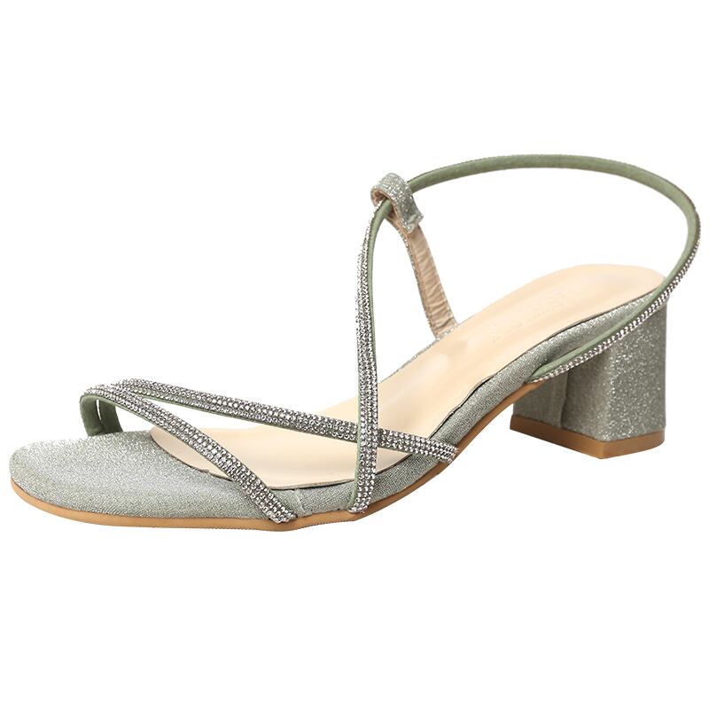 厚手のヒールサンダル女性2020年の新しい夏のファッション野生のネット赤インオープントゥ小さな新鮮なラインストーンのローマの靴 部族の婦人靴0661800