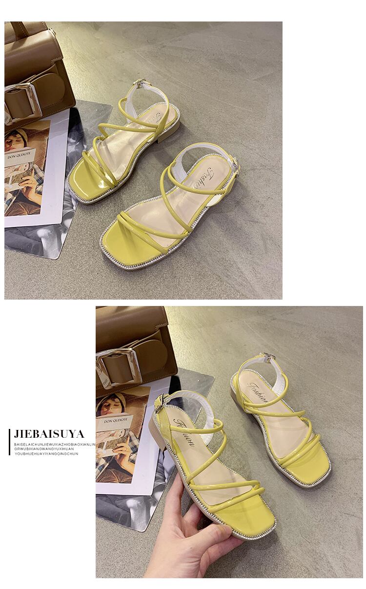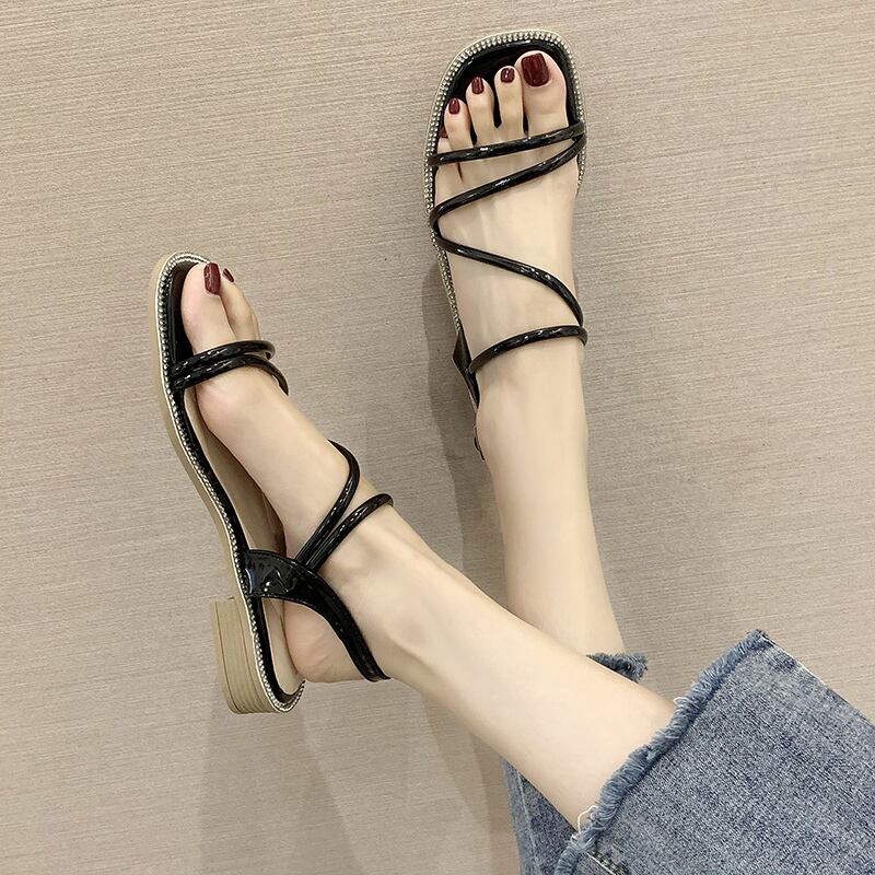 ネットの赤いサンダル女性2020年夏の野生の妖精スタイルフラットオープンつま先正方形つま先ローマンシューズ女性の新しいinsバージョン 部族の婦人靴6452243