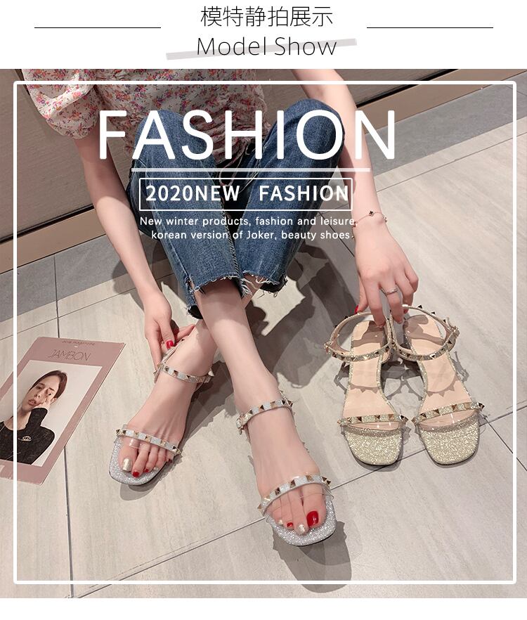 サンダル女性2020新しい夏ワイルドネットレッド透明insトレンドファッションシックヒールフェアリースタイルローマシューズ夏 部族の婦人靴5998069