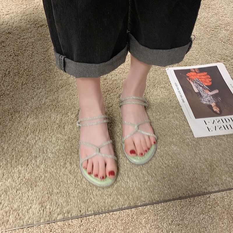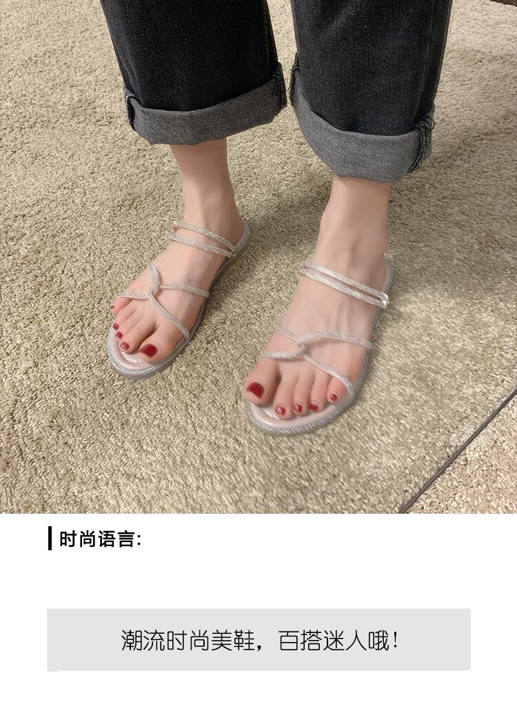 2020夏の野生の新しいサンダルとスリッパの女性は、つま先が開いたフラットボトムの妖精スタイルの2つのサンダルを着て単語を着用します 部族の婦人靴8184810
