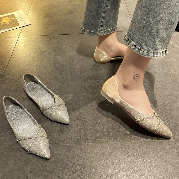 フラット女性の靴2020新しい夏のラインストーン野生の尖った浅い口の靴女性のスクープシューズファッションエンドウ靴潮 部族の婦人靴9988556