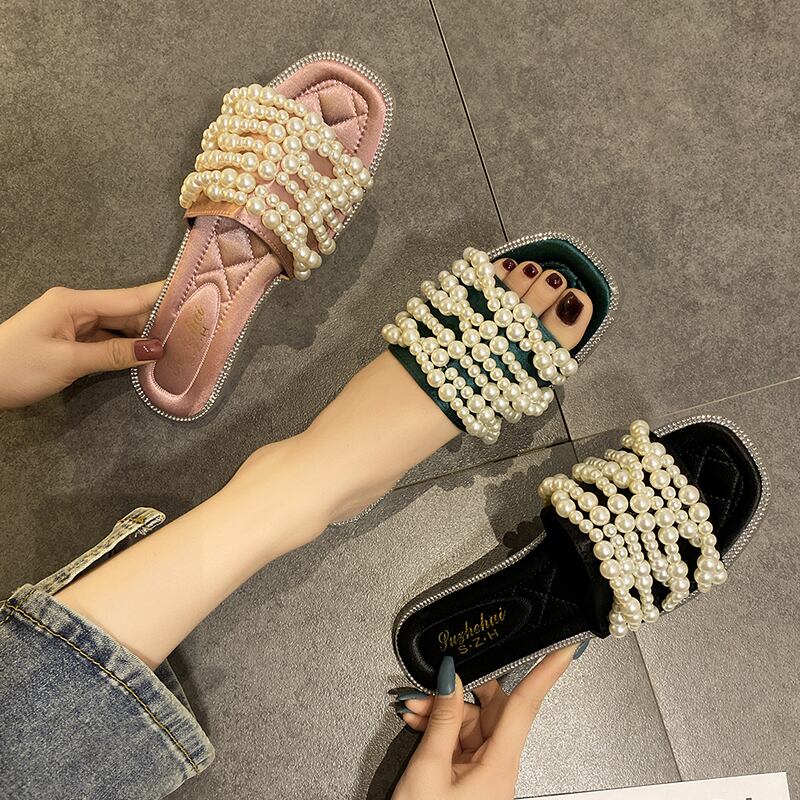 一言ドラッグレディースウェア2020夏新作insパールワイルドネットレッドフェアリーウィンドフラットスリッパレディース 部族の婦人靴7761854