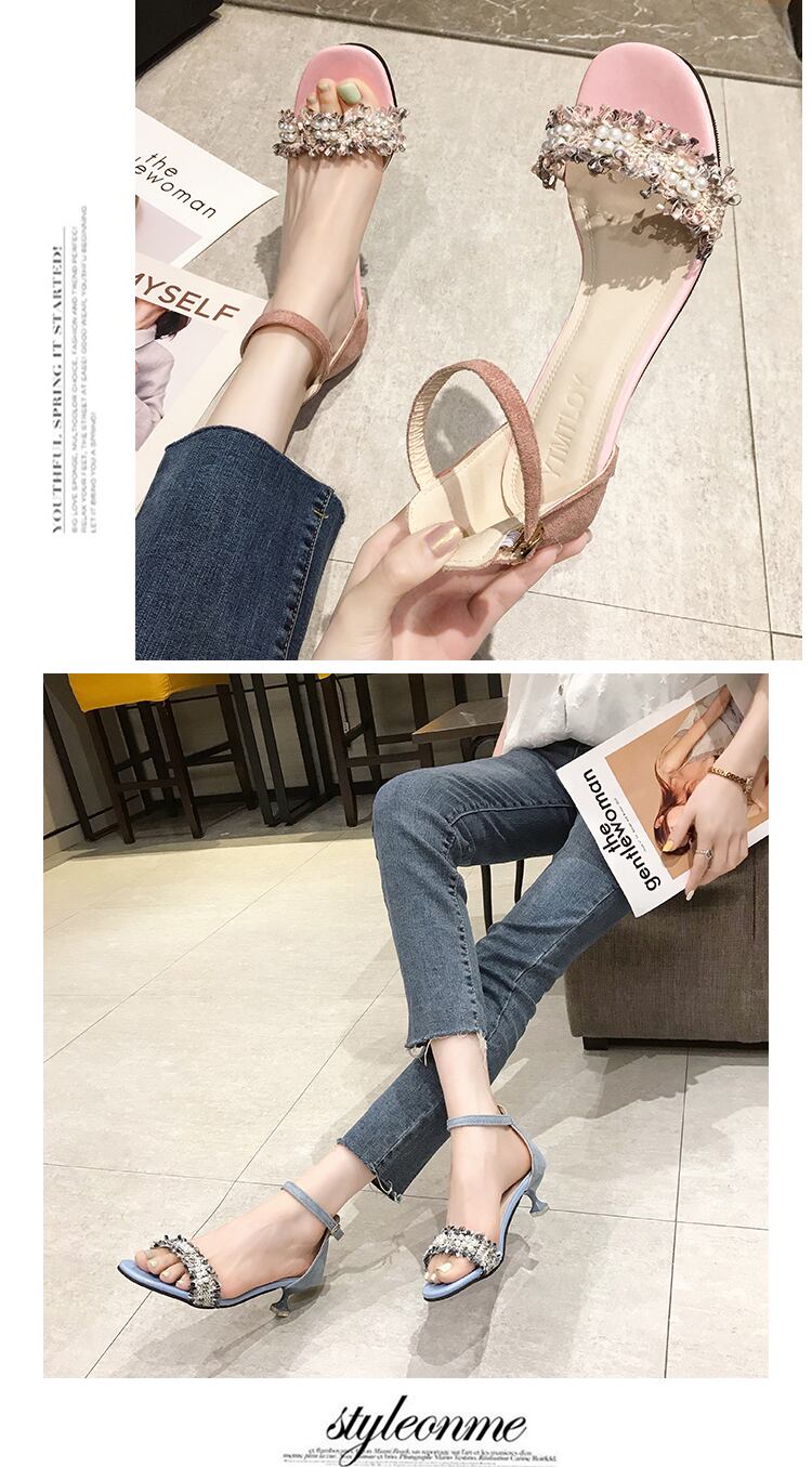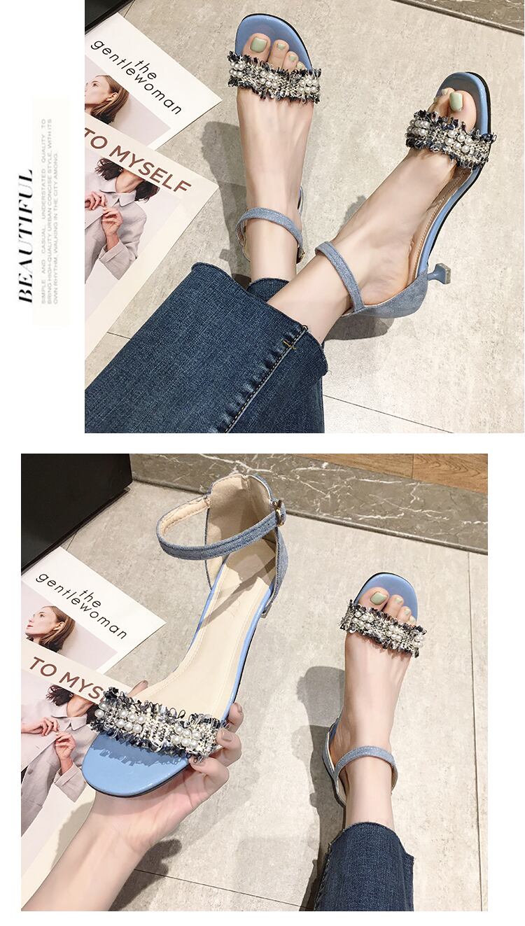 サンダル女性の妖精スタイル2020夏の新しいファッションパールオープントゥバックルストラップスティレットハイヒールの女性 部族の婦人靴6302619