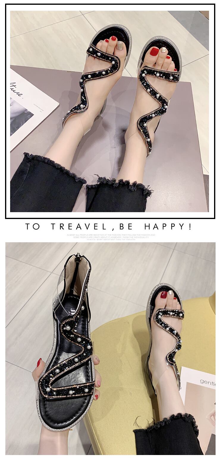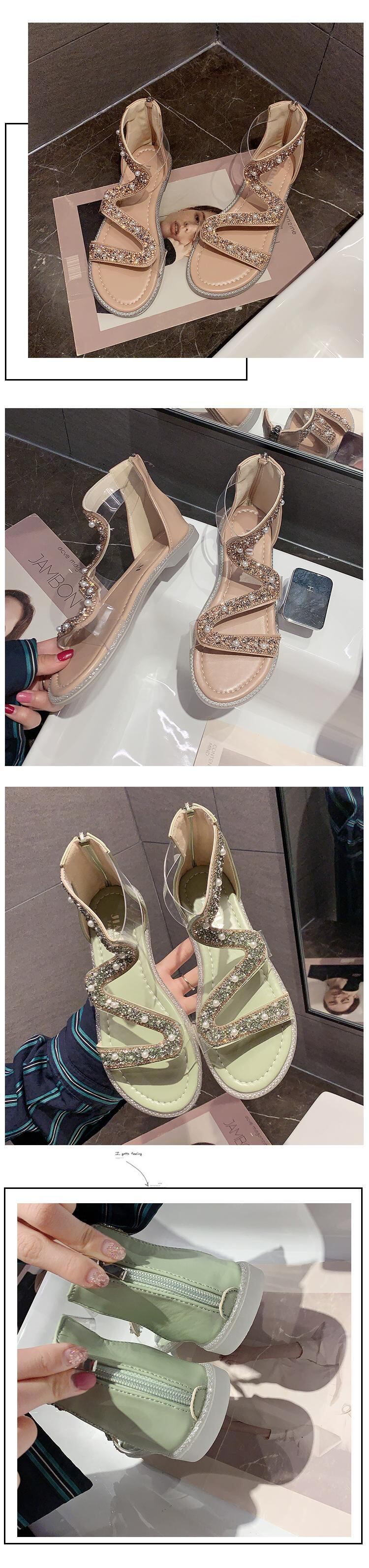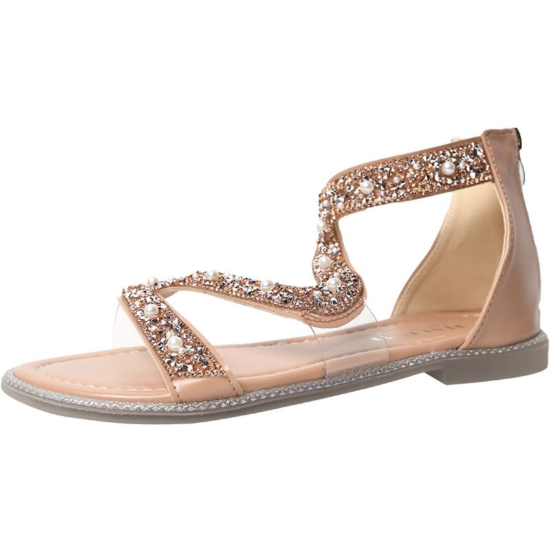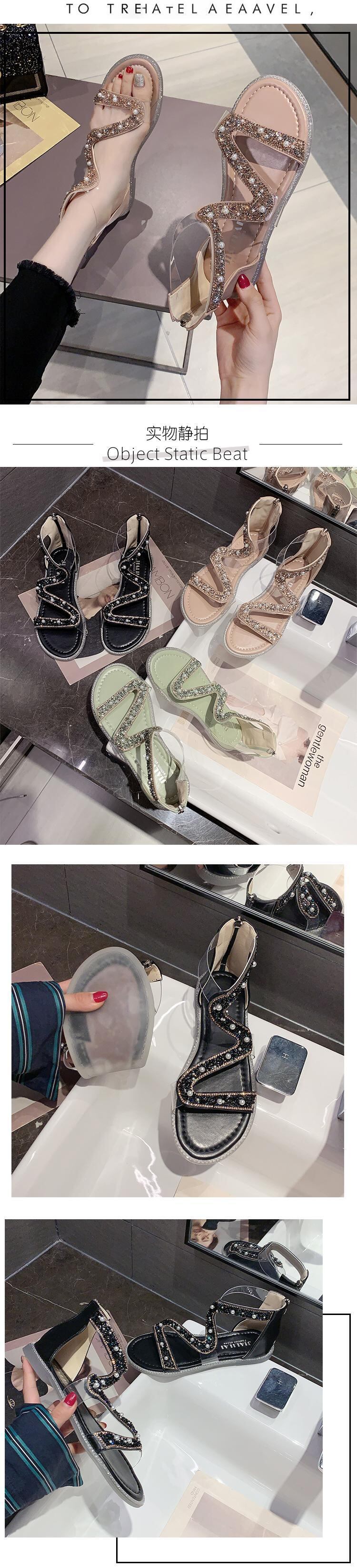ローマサンダルレディース2020新バージョンオールマッチフラットシューズレディースサマーパールソフトボトムレディースバックジッパーレディースシューズ 部族の婦人靴2471762