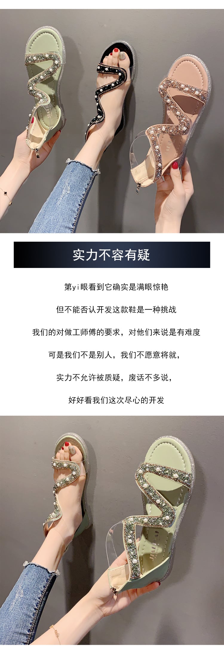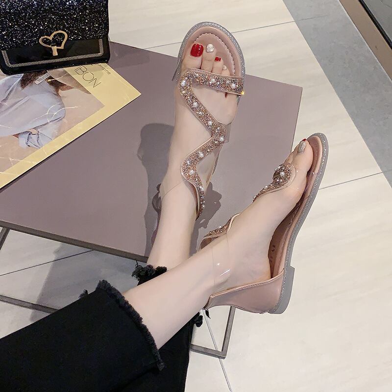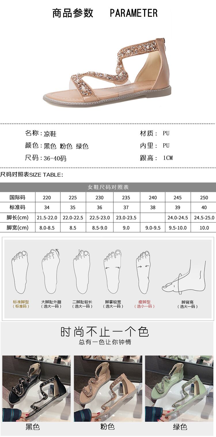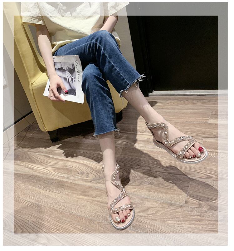 ローマサンダルレディース2020新バージョンオールマッチフラットシューズレディースサマーパールソフトボトムレディースバックジッパーレディースシューズ 部族の婦人靴2471762