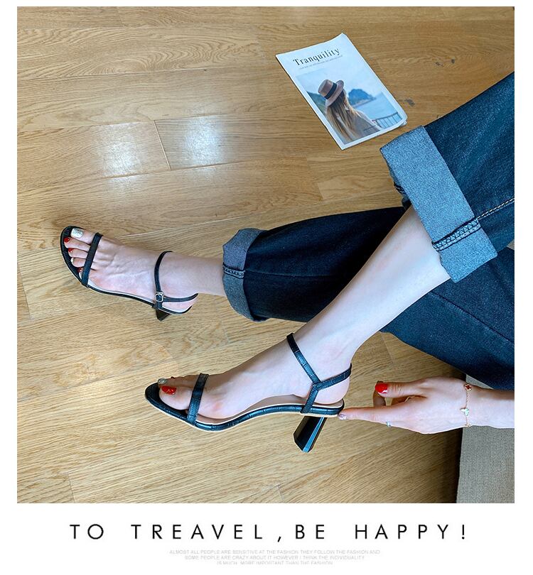 フランス語単語サンダルレディース妖精スタイル2020新しい夏厚いかかとネット赤いファッションハイヒール 部族の婦人靴8662221