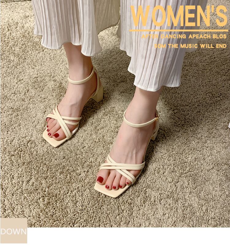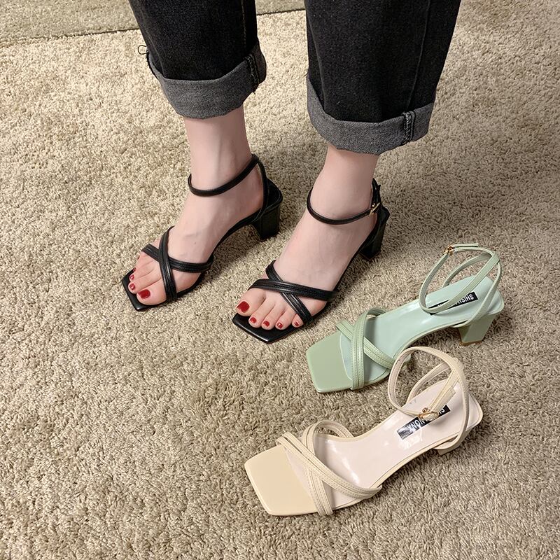 純赤いサンダル女性2020新しいファッションワイルドオープンつま先厚いローマの靴の潮でフレンチスクエアヘッドワード 部族の婦人靴1129517