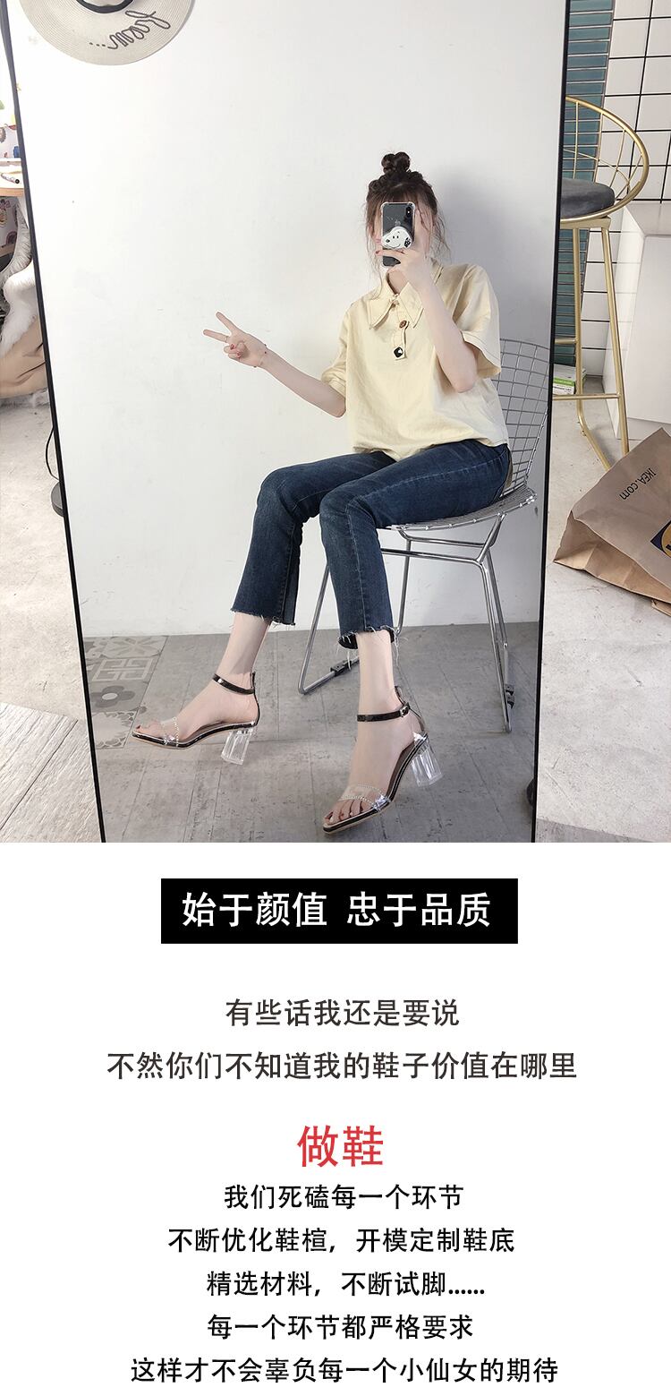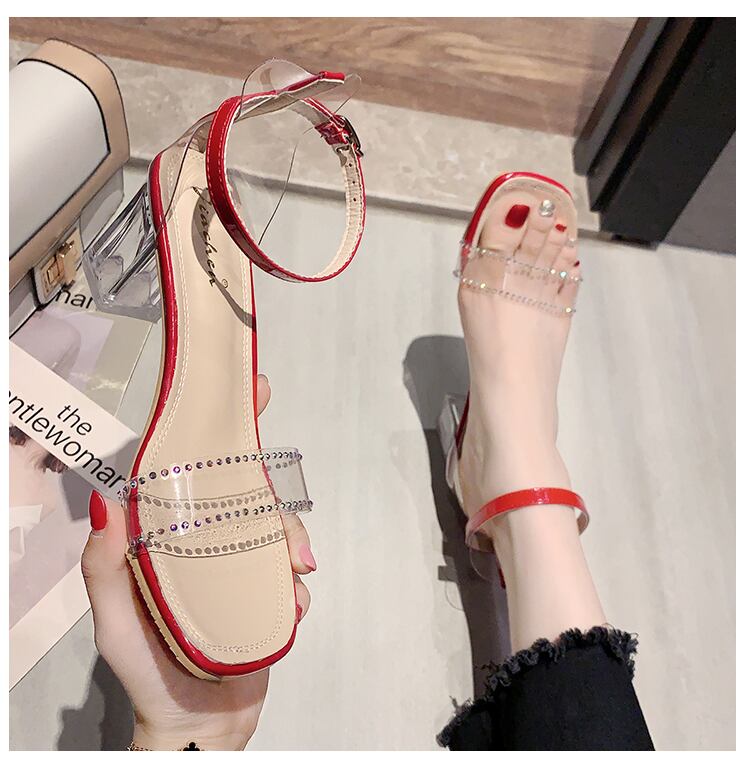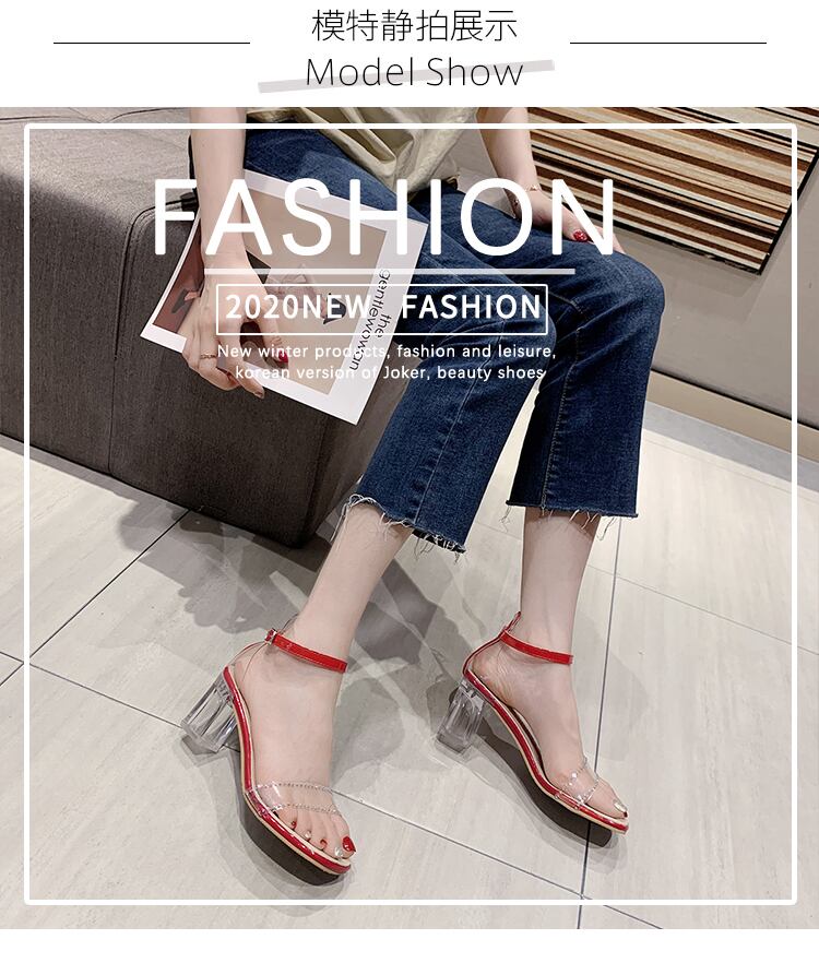 ローマの靴でスクエアヘッドワイルドネット赤い透明な厚いヒールのサンダル女性insタイド2020夏の新バージョン 部族の婦人靴7037203