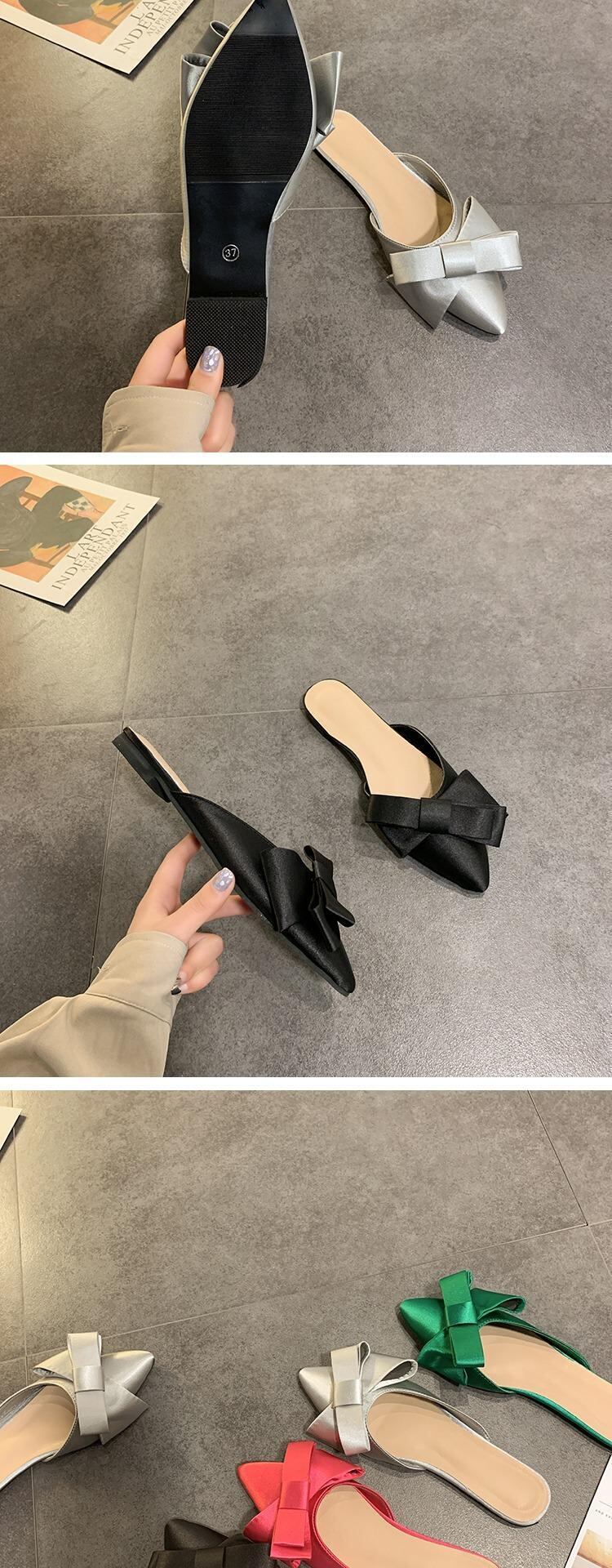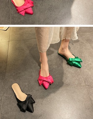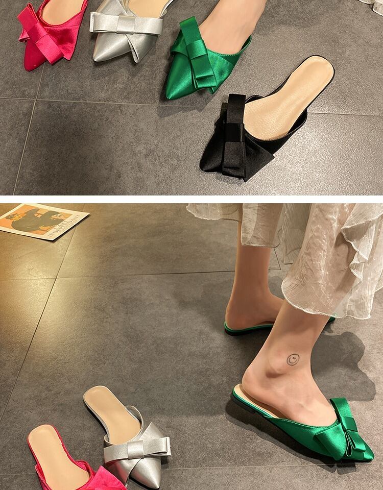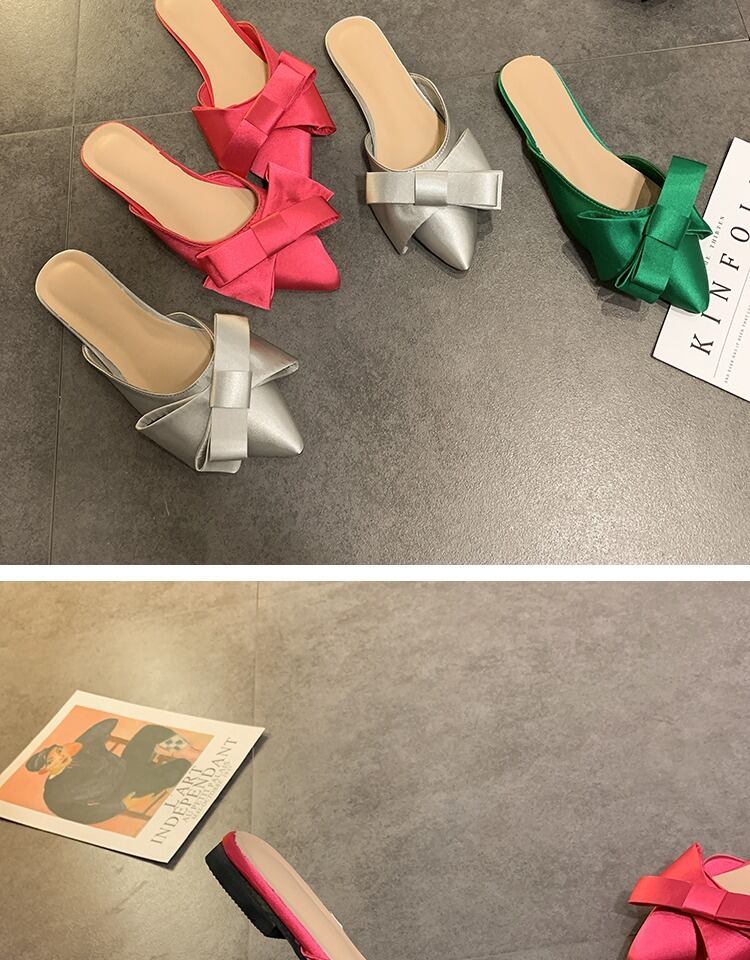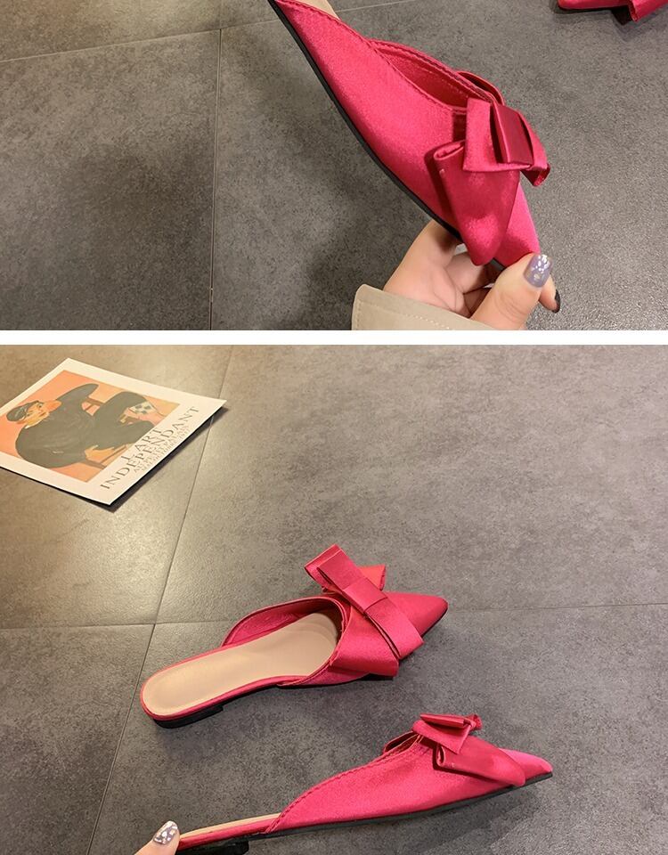 包頭ハーフスリッパ女性2020春と夏の新しい弓ネット赤尖った野生の学生フラットミュール 部族の婦人靴7846177