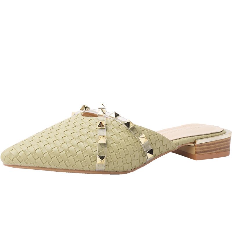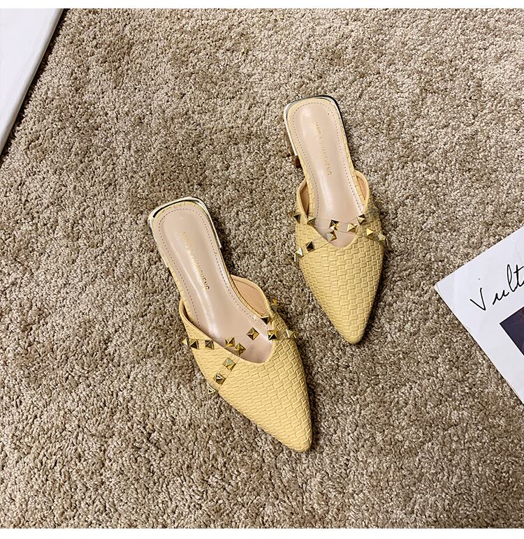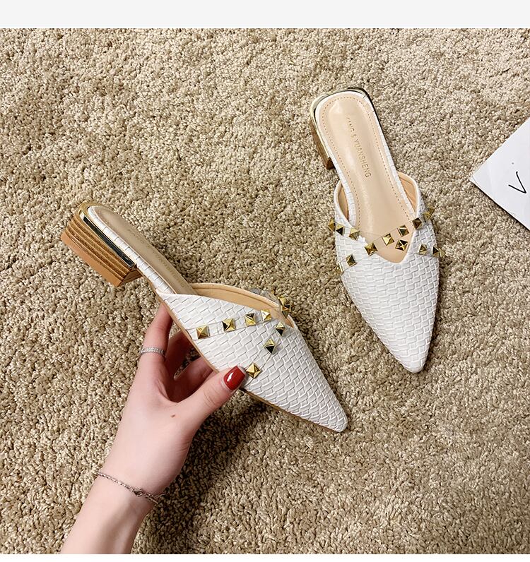 包頭スリッパ女性は、2020年春と夏の新しいネット赤い尖ったファッション野生のリベットを怠惰なハーフスリッパで着用します 部族の婦人靴3724715