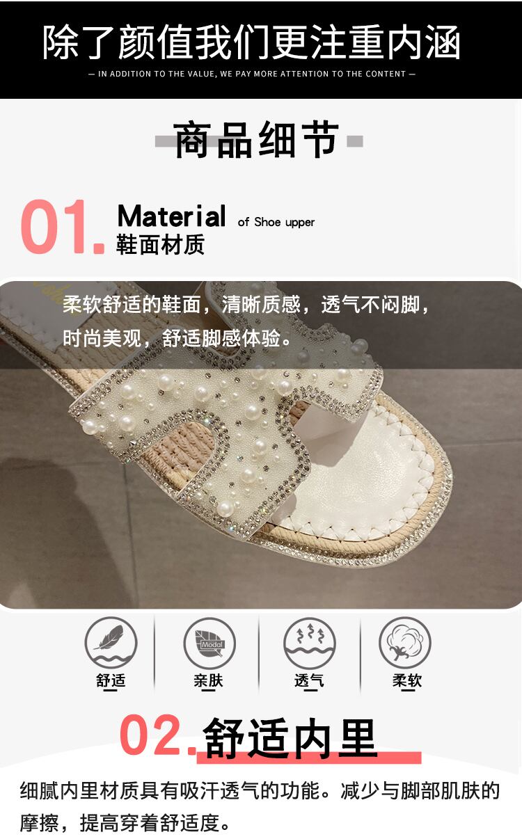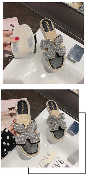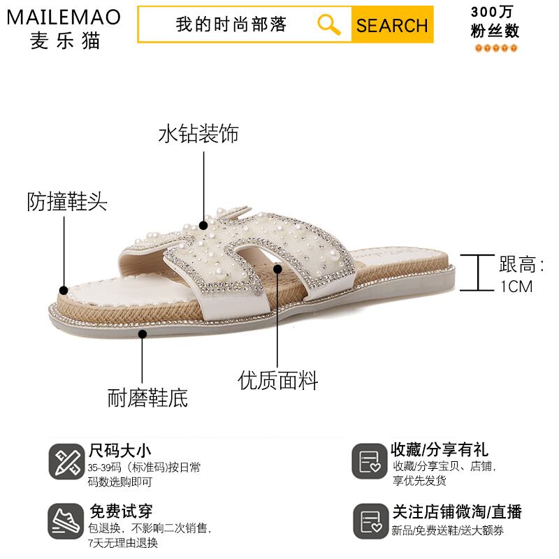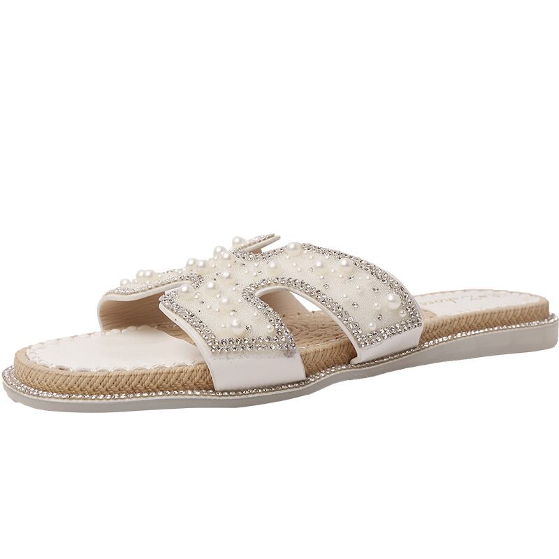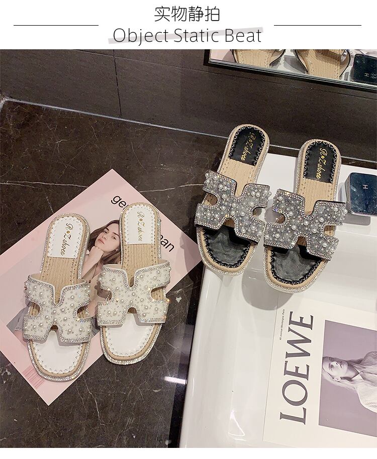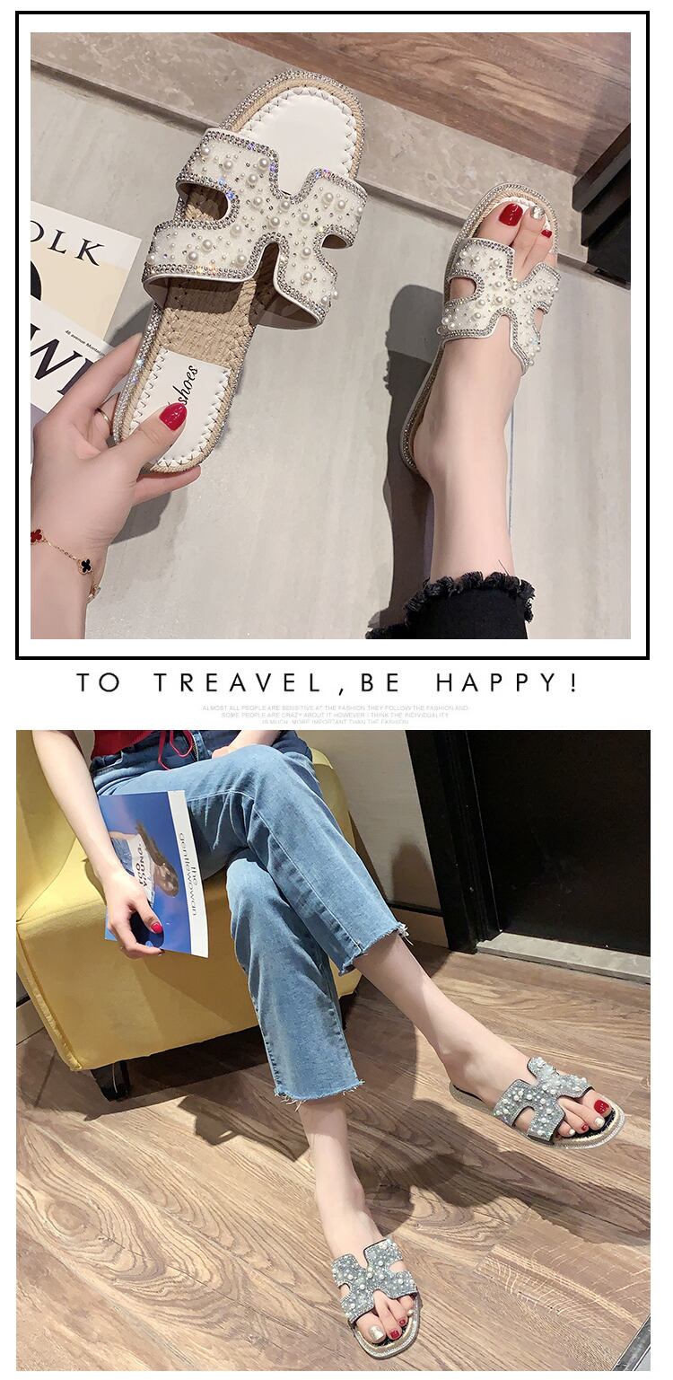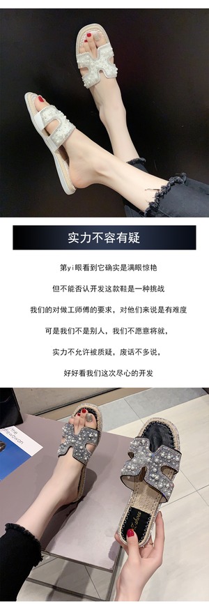 スリッパの女性は、2020年の夏の新しいバージョンの妖精スタイルの真珠のフラットボトムトウオープントゥソフトボトムサンダル女性 部族の婦人靴2500260