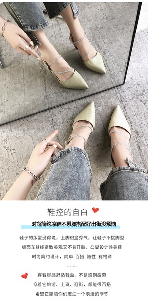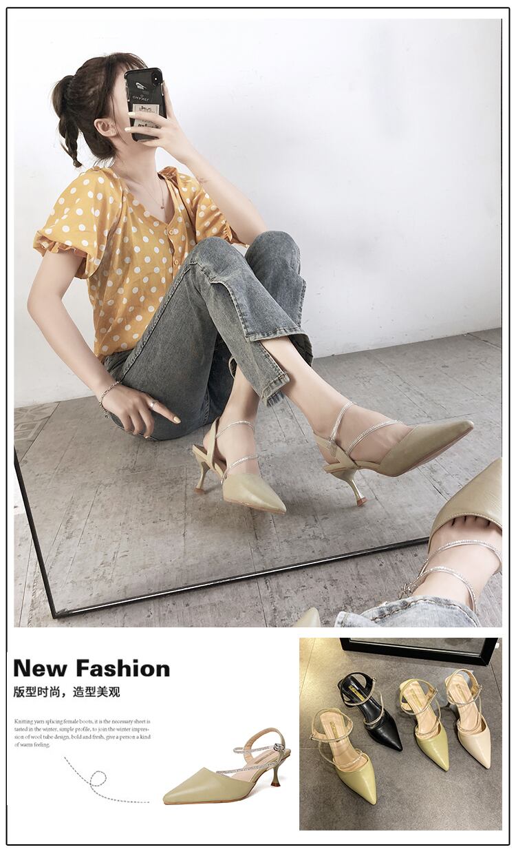 サンダル女性の妖精スタイル2020新しい夏包頭指摘つま先ラインストーンスティレットハイヒール小さな新鮮なラインストーンレディースシューズ 部族の婦人靴6903039