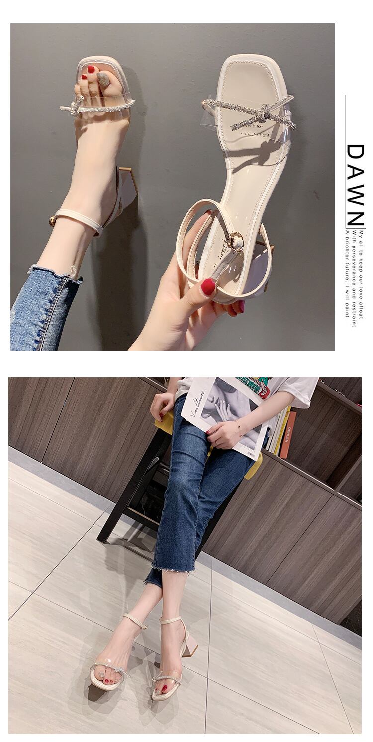 サンダルの女性の妖精スタイル2020夏の新しいファッションのラインストーンの女性の靴の厚いヒールのオープントゥの単語のローマの靴 部族の婦人靴2254165
