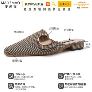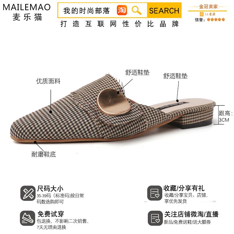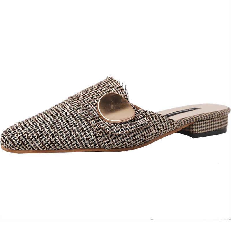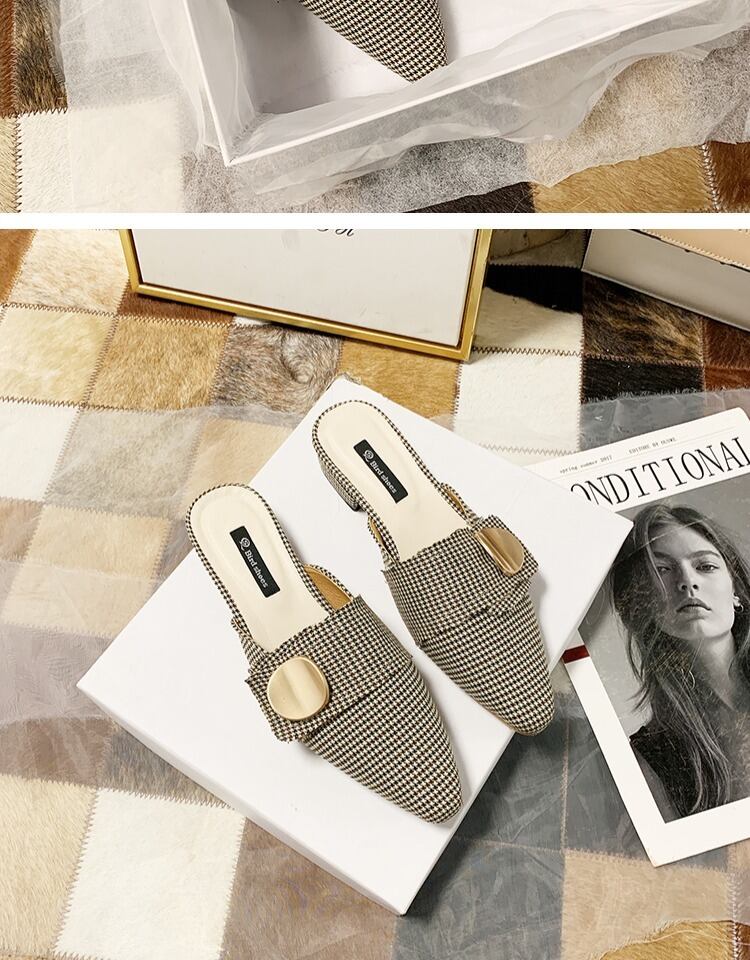 千鳥格子包頭ハーフスリッパの女性は、新しい厚いヒールの怠惰なサンダルがローヒールの小さな香りの風ミュラーの靴を指摘しました 部族の婦人靴2101746