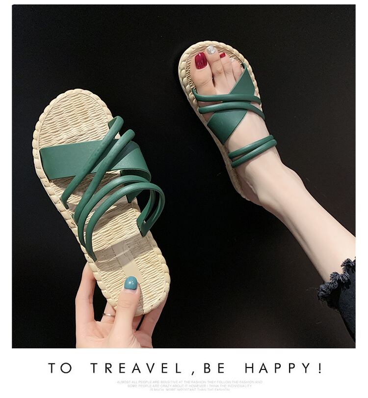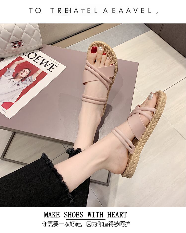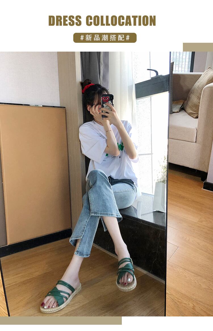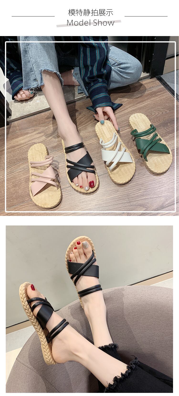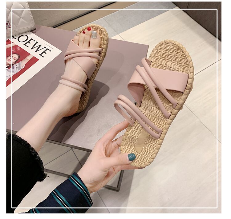 サンダルとスリッパレディースアウターウェア2020夏の新スタイルわら織りワイルドネットレッドオープントゥフラットカジュアルフリップフロップレディース 部族の婦人靴2959890