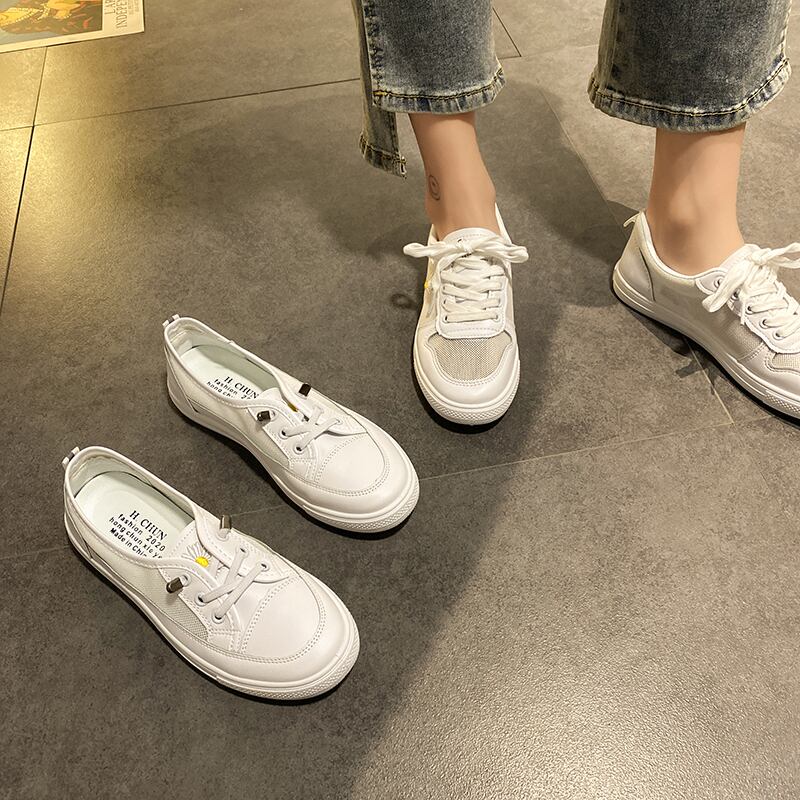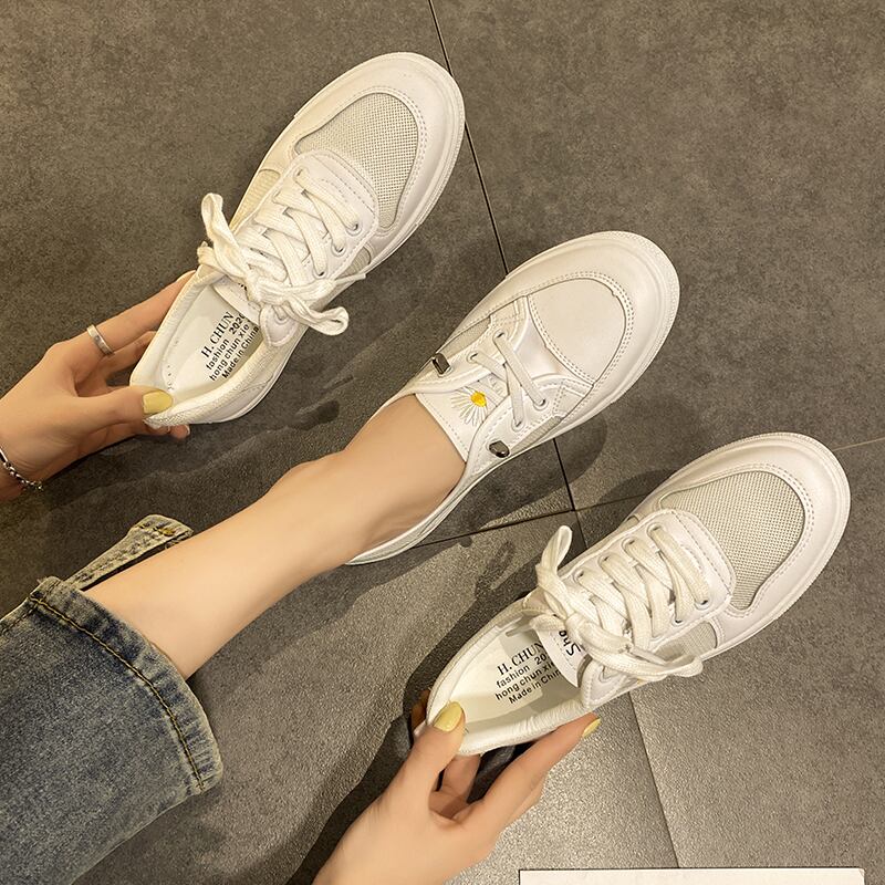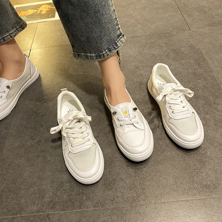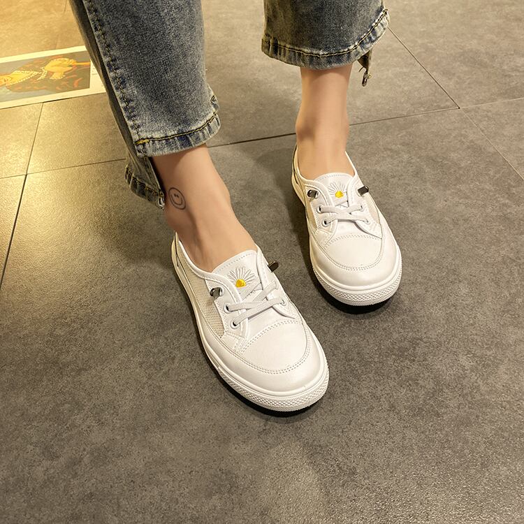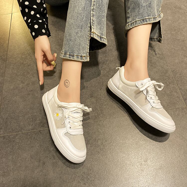 リトルホワイトシューズ2020新しい女性の靴ファッション夏の通気性の学生ロートップシューズラウンドトゥフラットメッシュパネルシューズ 部族の婦人靴5471536