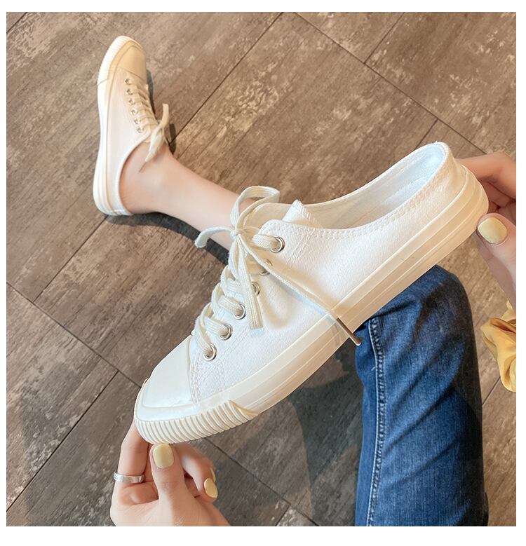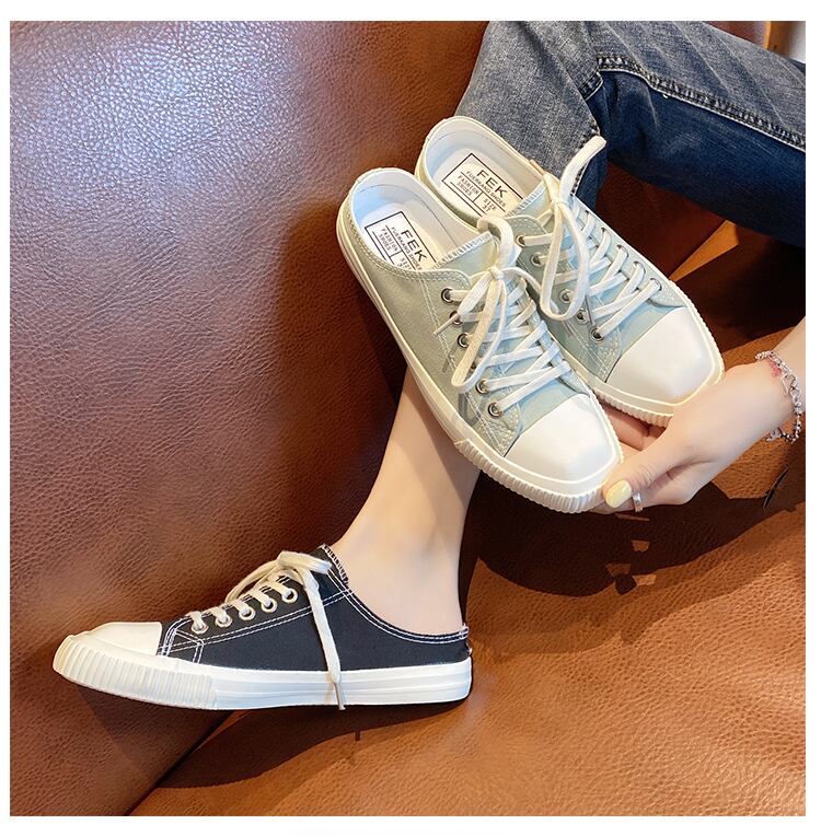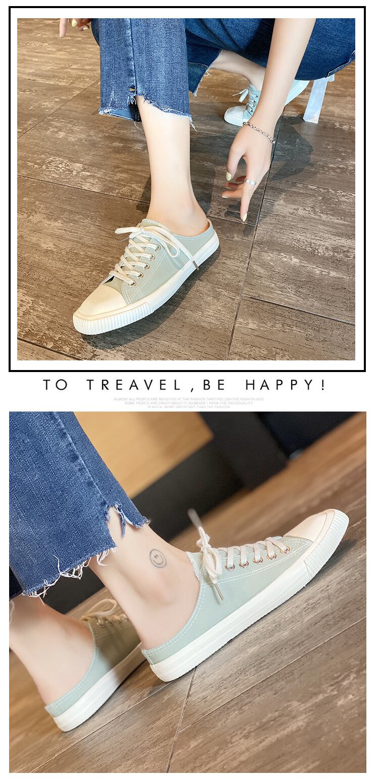 包頭ハーフスリッパ女性2020新しいファッションワイルドフラットネットレッドインスタイドカレッジスタイルの女性のキャンバスドラッグ 部族の婦人靴8912630148