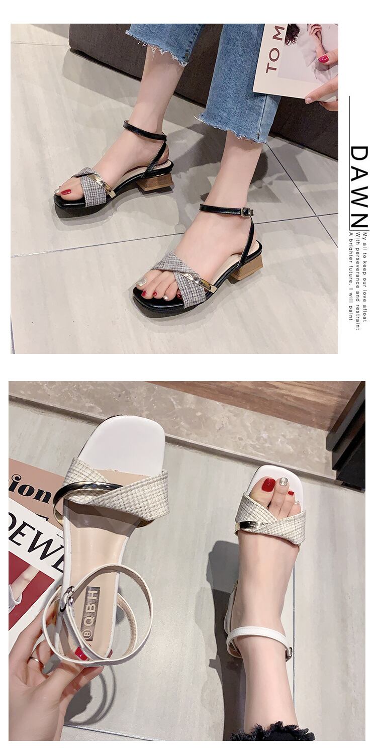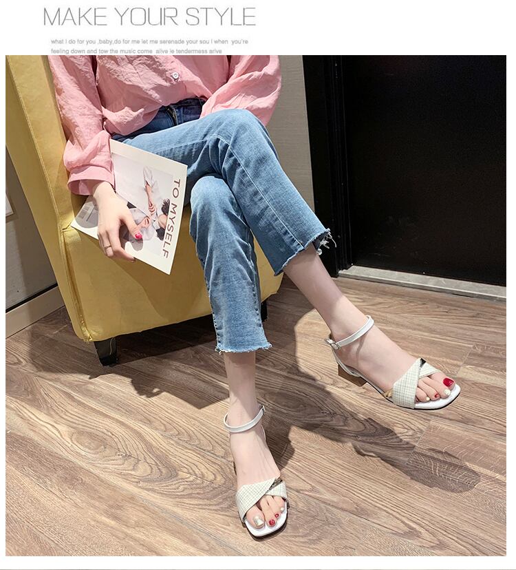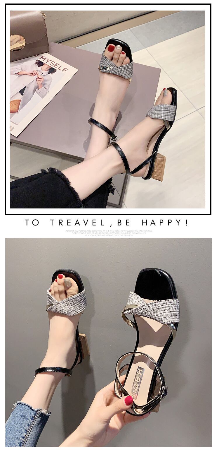 厚いヒールのサンダル女性2020年夏の新しいバージョンの野生のネット赤イン潮潮バックル妖精風ハイヒール 部族の婦人靴4600851
