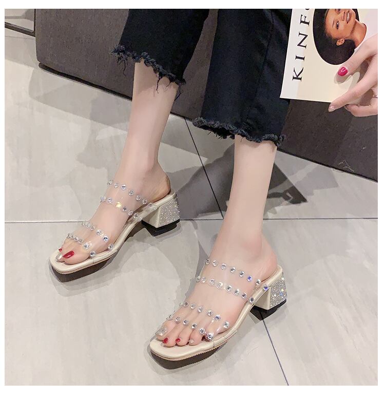 サンダルとスリッパ女性ins2020新しい夏アウターファッションオールマッチネット赤い妖精スタイルの厚さとラインストーンのフリップフロップ 部族の婦人靴9479080