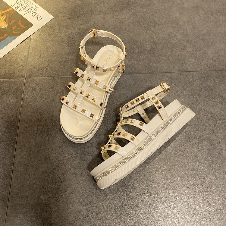 サンダルレディース2020新作オールマッチフレンチフェアリーリベットTストラップファッション夏厚底レディースシューズ 部族の婦人靴8794041