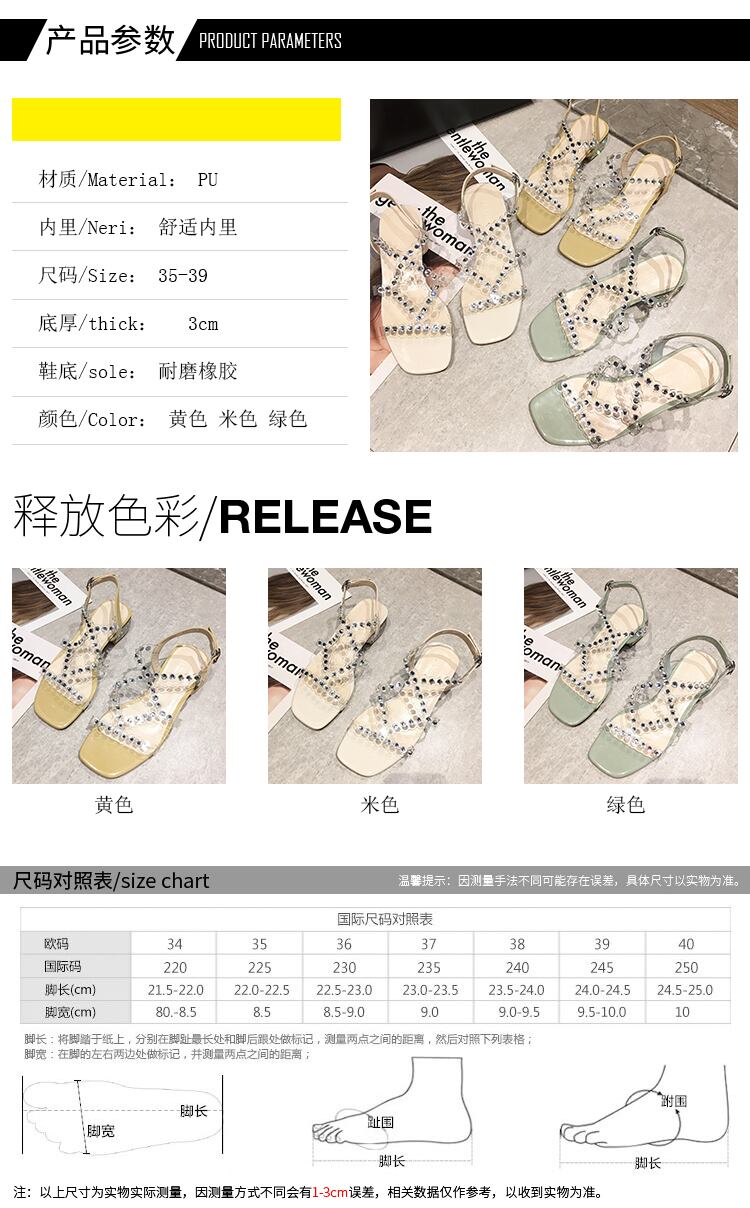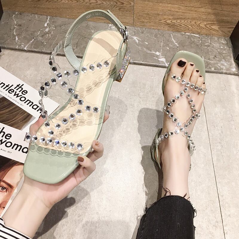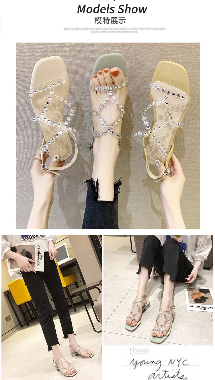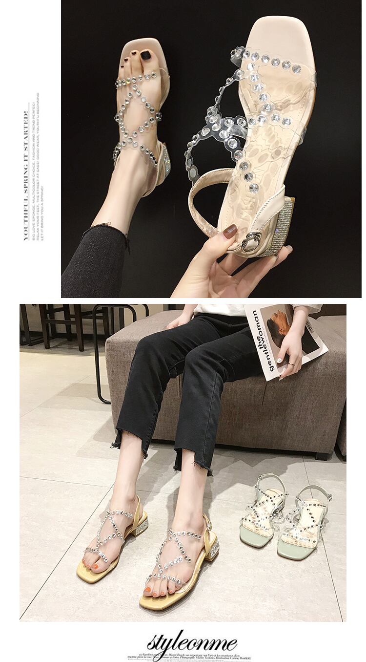 ネットレッドサンダル女性2020新しいファッションラインストーンカジュアルワイルドオープントゥ太いフェアリースタイルのローマの靴の女性 部族の婦人靴5224621