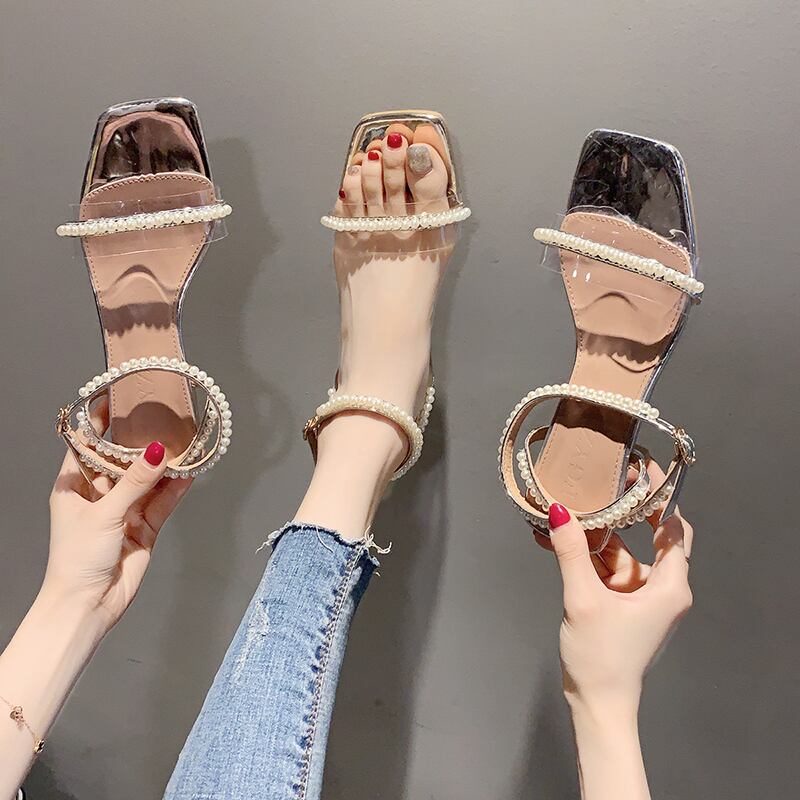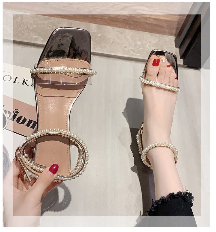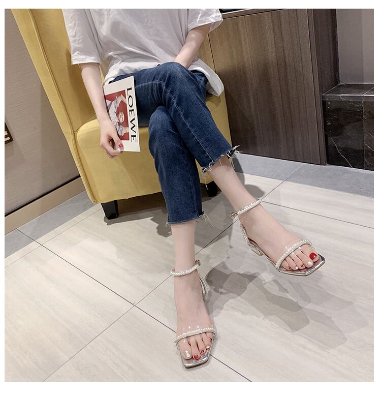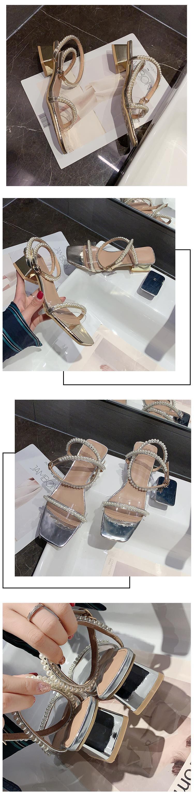厚いヒールのサンダルの女性2020新しいバージョンのワイルドネットレッドインオープントウパールファッションワードハイヒールの女性 部族の婦人靴42146550195