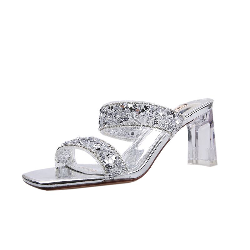 純赤いサンダルとスリッパレディースアウター2020新しい厚かかとの高い女性の靴ファッション野生のオープンつま先のラインストーンハイヒールのトレンド 部族の婦人靴54222675169