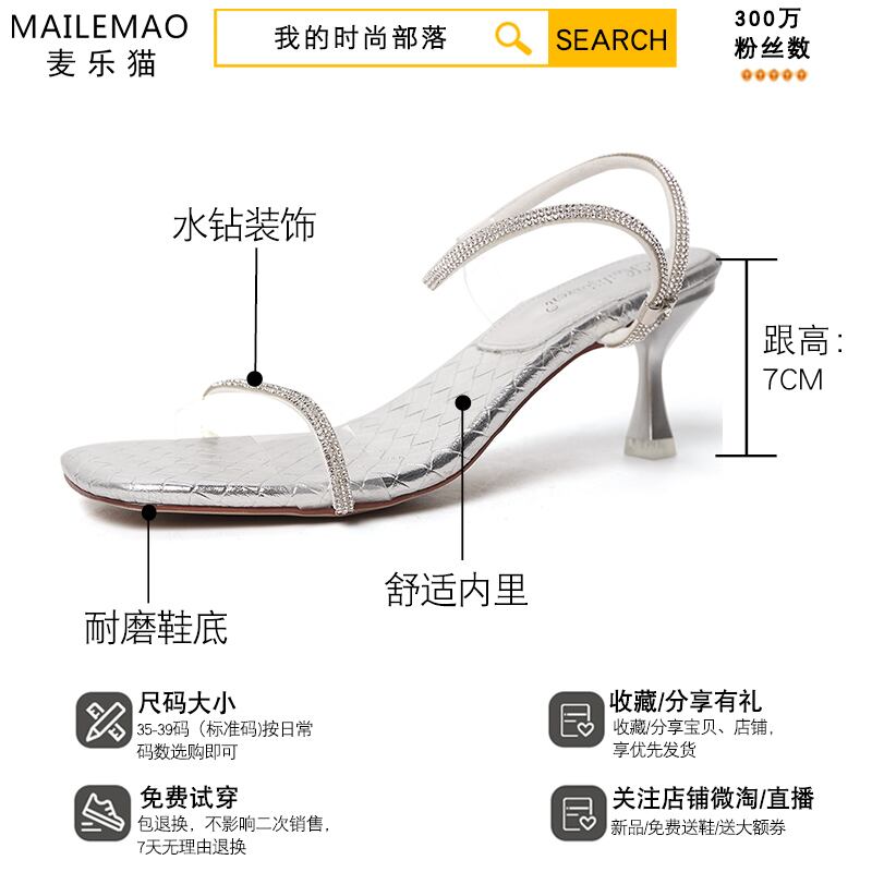 女性のファッションサンダル2020新しい夏のスティレットファッションワイルドネットセレブリティラインストーンの妖精トレンドハイヒール 部族の婦人靴54915699737