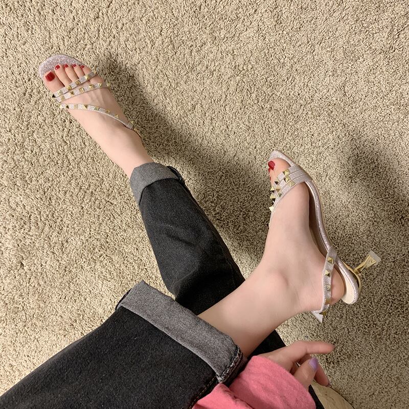 2020年の新しい夏のローマのサンダルの女性insはヨーロッパとアメリカのネット赤い妖精のスタイルのセクシーな野生のスティレットハイヒールを潮 部族の婦人靴16545322901