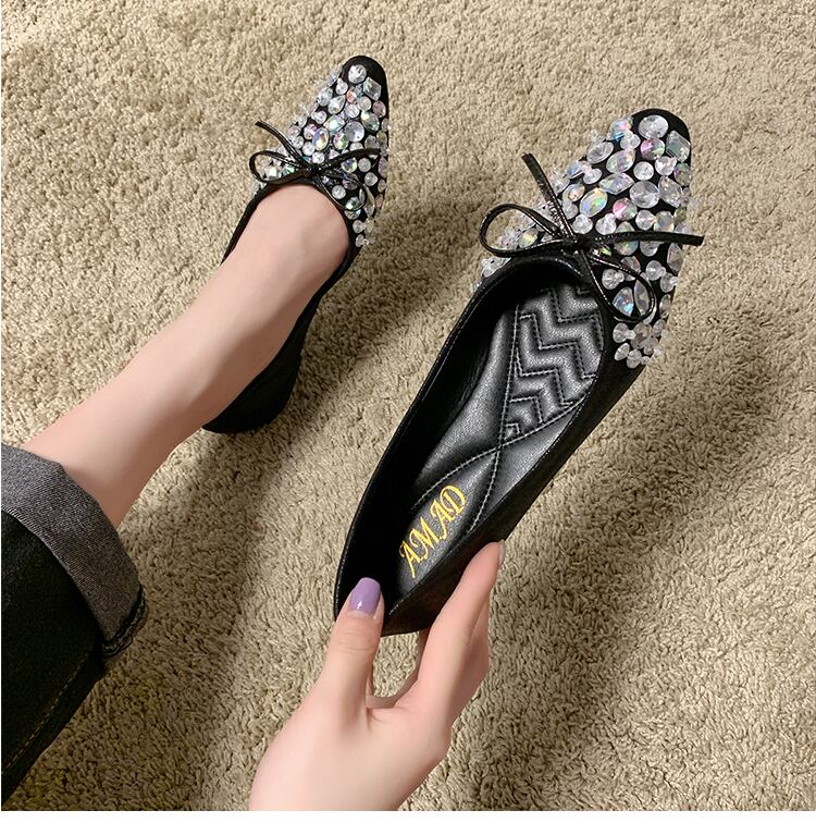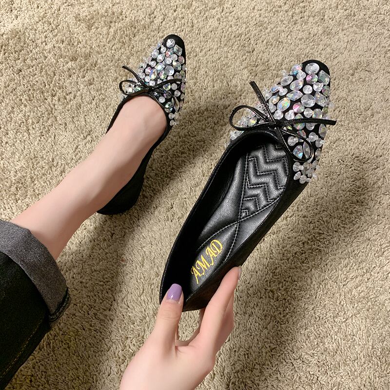 女性の靴夏の靴2020新しい夏の野生のネット赤ローヒールフラットラインストーン弓弓ペダルスクープシューズ 部族の婦人靴7334882