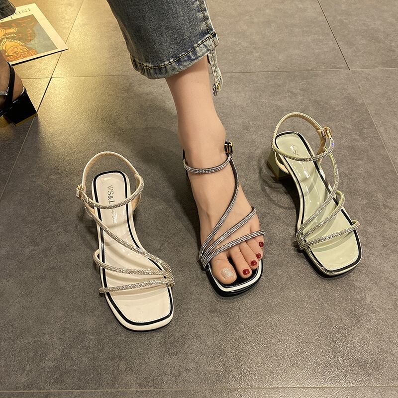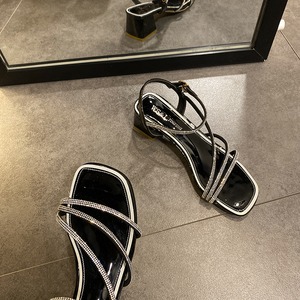 ネットレッドサンダル女性の妖精スタイル2020夏の新しいラインストーン野生のオープンつま先の厚いヒールスクエアトゥローマンシューズの女性 部族の婦人靴2901537